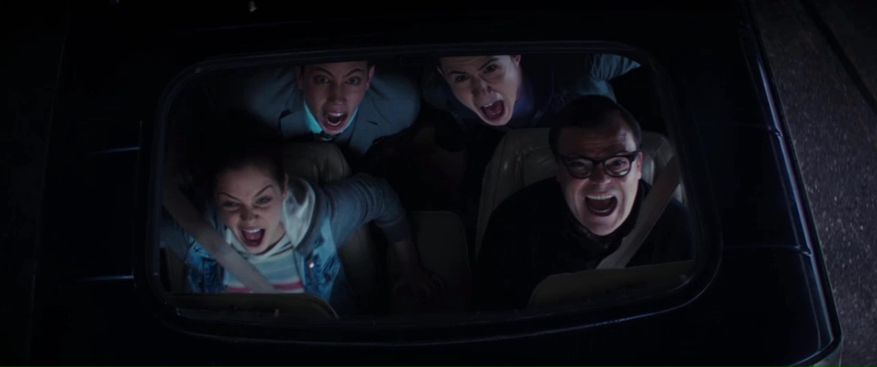 Ainsi, on aura l’abominable homme des neiges, le loup-garou, les morts vivants, les nains de jardins, une mante religieuse géante, Slappy et j’en passe. Oui, sur 1h43, ça fait tout de même beaucoup, et on regrettera que la plupart de ces monstres soient… en CGI. Mais dans le contexte du film, il faut bien avouer que finalement, ça passe bien, surtout que ces monstres n’ont pas pour but d’être réalistes ou de faire peur, mais plutôt de divertir le spectateur et d’amuser. La scène des nains de jardin sera par exemple bien amusante, tout comme la scène du supermarché avec le loup-garou. On s’amuse de ces situations, des dialogues qui fonctionnent grâce à des personnages bien définis (Champ qui a peur pour un rien et a toujours une anecdote de merde à sortir pour briser l’ambiance, Stine qui amuse par son ironie et son cynisme). Certes on ne rira pas aux éclats, loin de là, et on n’échappera pas à certaines facilités scénaristiques, moments prévisibles ou encore un fameux happy ending, mais on ne voit pas le temps passer et au final, la catastrophe annoncée n’a même pas eu lieu. Oui, Chair de Poule m’a fait passer un bon moment inespéré, il ne fait certes jamais peur, mais m’a rappelé les comédies horrifiques légères de ma jeunesse, tout en voulant respecter un univers entier.