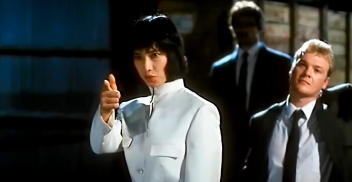 Le gros morceau d’action du film survient lors du dénouement quand Rothrock fait face à Michiko Nishiwaki dans un vaste entrepôt (le champ de bataille typique dans les films d’action des années 80). Tout comme Rothrock, Nishiwaki a vraisemblablement été engagée à la dernière minute pour rehausser le film. D’ailleurs, elle n’apparait que dans trois scènes incluant celle de l’affrontement final. Malgré la brièveté de ses apparitions, Nishiwaki fait une superbe impression avec l’intensité de son regard et son costume mao tout blanc.