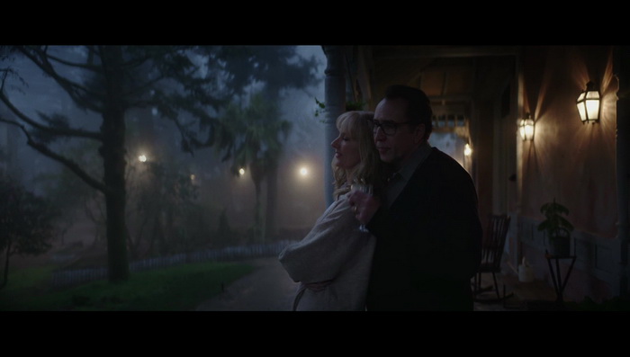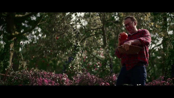 Alors on pourra lui reprocher quelques petites longueurs dans sa première heure, servant à mettre doucement en place les enjeux avant que tout ne décolle. Car mine de rien, le film dure presque deux heures. Deux heures très plaisantes mais avec quelques petites longueurs, sans que le métrage ne paraisse néanmoins long. Mais lorsque débarque la seconde heure, Stanley se fait clairement plaisir, multiplie les retournements, les scènes parfois dérangeantes, et verse parfois dans une horreur que le Carpenter période The Thing n’aurait pas renié. Je n’en dirais pas plus pour ne pas gâcher une des scènes marquantes du métrage, mais ça a clairement de la gueule. Nicolas Cage lui aussi se fait plaisir, jouant plutôt sobrement au début avant lui aussi d’être infecté par cette couleur et de pouvoir verser dans le jeu habituel de la folie qui lui aura valût ses lettres de noblesses. Ou la risée de nombreux spectateurs, au choix. Mais dans le cas présent, comme dans Mandy, ça fonctionne, son jeu allant avec le film et son ambiance si particulière. Et si je n’ai pas vu toutes les adaptations de cette nouvelle (la première datant de 1965, avant deux adaptations dans les années 80 avec La Couleur de l’Abîme et The Curse, puis l’opus de Ivan Zuccon en 2008 Colour from the Dark, et le film Allemand déjà cité plus haut), on peut aisément dire que Richard Stanley parvient à mettre son propre style et ses obsessions dans l’univers de Lovecraft, sans pour autant dénaturer l’univers de l’auteur. Je dirais même qu’il livre ce qu’il faut faire en adaptant une œuvre existante. Se l’approprier, sans la dénaturer, pour livrer une vision personnelle, qui sera forcément différente de celle des autres lecteurs, mais thématiquement intéressante. Alors quand en plus ça tient la route.