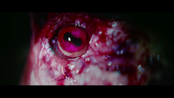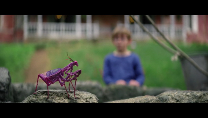 Une famille tout ce qu’il y a de plus normale, jusqu’à ce qu’une météorite atterrisse dans leur jardin. Jusque là, ça va, sauf que la météorite en question semble fondre dans la terre, et infecter tout ce qui la touche. Mais, infecter dans le sens Lovecraftien de la chose, c’est-à-dire à tous les niveaux, que ce soit physique ou même au niveau cosmique, de l’espace et du temps. Et cette force, inconnue, qui va clairement venir foutre la merde dans la famille et dans les environs se manifeste pas une couleur étrange, indéfinissable. Oui, car c’est du Lovecraft. Choix étrange du coup pour Stanley d’avoir tourné son métrage en couleurs, le forçant à donner une couleur à… cette couleur indescriptible. (si vous voulez du noir et blanc, il faut se tourner vers le film Allemand de 2010 adaptant la même nouvelle). Et pourtant, si l’on pourra dire suivant les plans « c’est du rose » ou « c’est du violet », il y a eu un très gros travail en post production pour que cette fameuse couleur change, puisse se mouvoir, et alterne les tons pour finalement être assez difficilement descriptible simplement, mais par contre, c’est toujours un plaisir pour les yeux. Et on comprend rapidement, autant dans son aspect fantastique avec cette couleur qui change les choses, voir tente d’en créer de nouvelles, mais aussi via cette famille, ou encore via Ezra, un homme étrange vivant dans une cabane dans la forêt, que le film veut avant tout nous parler de la communication, du partage. La famille tente de communiquer. Mais la couleur également. Quand à Ezra, il tente de dire la vérité à ce qui veulent bien l’écouter. Un personnage qui semble clairement venir des anciens métrages de Stanley, et donc qui fait plaisir, même si sa place dans l’univers de Lovecraft pose des soucis de cohérence. Comment un homme simple vivant seul dans la forêt et coupé de tout en sait autant sur les événements ? Un détail on me dira. Et oui, car malgré quelques petits défauts, et comme je pense cela s’en ressent depuis ma première phrase, Color out of Space m’a donné pile ce que j’attendais de lui.