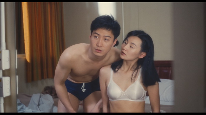 Cette jolie histoire platonique, à force de péripéties et de rapprochements en tout genre, aboutira bien vite à une nuit de passion. Et c’est pendant cette période que la relation est selon moi la plus belle. Durant ce très court entre-deux, où les personnages ne savent plus comment se jauger. Ils ne savent pas encore s’ils sont amoureux, ou si c’est leur solitude qui a permis cette joyeuse divagation. On les sent très attachés l’un à l’autre, se forçant malgré tout à une distance de façade qui les blesse tous deux. Il s’agit d’une écriture de romantisme délicat, tout en subtilité, jusque dans son érotisme pudique. Étant attirés l’un par l’autre, ils vont continuer de se voir comme si de rien n’était, tout en ayant pertinemment conscience de leur désir mutuel. Mais dans leurs gestes, leurs attentions, on sent tout l’amour qu’ils se portent. Et durant un soir de fragilité et de tendresse, ils cèdent donc. S’ensuit une petite bulle de légèreté, où les amoureux vivent leur idylle, succombant quand ça leur chante. Hélas, bien vite des non-dits ainsi que de la culpabilité amènent les personnages à s’interdire cette histoire. Cette phase ne dure donc pas bien longtemps. Et c’est franchement dommage. C’est ensuite que le côté dramatique du film s’accentue. Chiao est obligée de travailler dans un salon de massage pour rembourser ses dettes. Xiao-jun de vivre avec sa petite amie qui a fini par le rejoindre, tout en continuant de penser à Chiao… Et là, c’est tout de suite moins agréable à suivre. On tombe dans du pathos un peu gras. On enchaîne les situations lourdingues de drame romantique où les personnages débloqueraient bêtement cette situation en étant sincères. Gros ventre mou donc, qui s’éternise, offrant des scènes poussives et clichées. Comme ce passage forcé dans la cabine d’essayage, digne d’une romance hollywoodienne dans toute sa guimauve… Xiao-jun se marie. Chiao épouse un mafieux. C’est pénible et plus vraiment agréable à suivre.