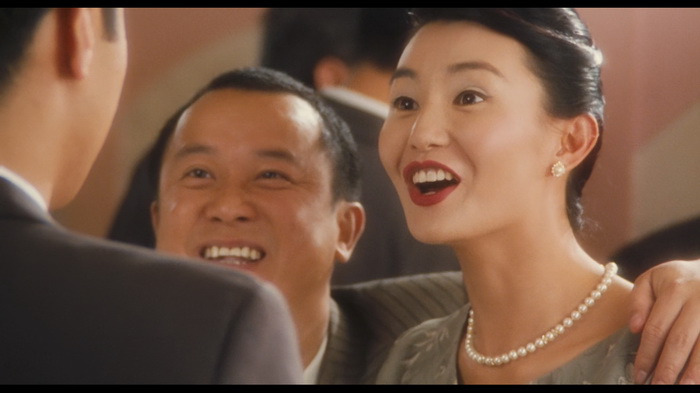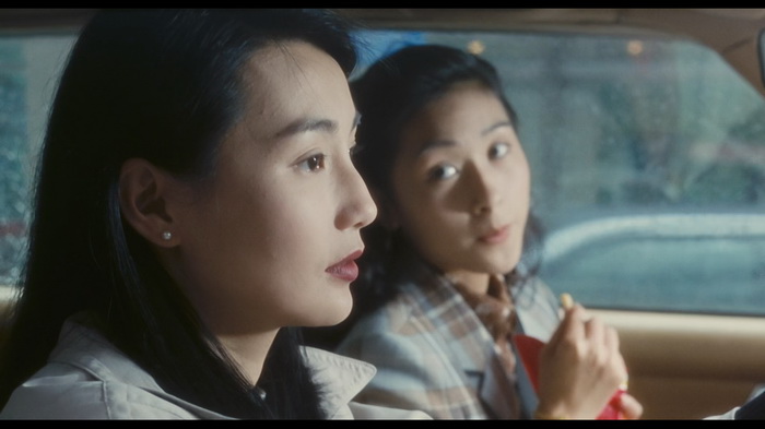 Beaucoup de défauts sont donc à souligner de ce Comrades Almost a Love Story, en grande partie via sa structure. Il pioche allègrement dans les poncifs du film dramatique sur fond de romance tragique, mais sans savoir comment en faire une source d’émotions efficaces. En revanche, il y a quelques qualités à mettre en avant. Déjà sa plus grande force est indubitablement le personnage de Li Chiao, ainsi que le jeu de Maggie Cheung. Celle-ci n’était pas encore passée par la bombe In The Mood for Love qui sortira 4 ans plus tard. Elle n’avait alors pas encore la grosse tête ni des attitudes de diva (du moins pas à l’international), et elle s’autorise ici un jeu si naturel qu’il en est sublime. C’est très agréable de voir l’actrice s’affirmer tout en se permettant une fragilité et une spontanéité vivifiantes. Quand on connaît son parcours, on ne peut qu’être absorbé par cette période bénie où elle n’était plus la potiche enfantine et pétillante telle que dans Police Story, et pas encore la froide et magnétique (et distante ?) déesse exotique post Madame Chan. Son jeu est subtil et fort. Il est riche d’une panoplie d’émotions ; on est triste pour elle, on saute de joie à ses moments de bonheur. Le spectateur ne peut qu’être pendu à son cou. Et c’est tout bête mais la voir parler en mangeant, d’une attitude innocemment vulgaire pendant un événement mondain… Le visage souriant avec des yeux tremblotants de tristesse…c’est un moment d’acting magnifique. C’est grâce à elle et uniquement elle qu’on arrive à croire à cette romance.