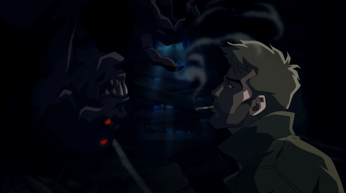Né sous la plume d’Alan Moore dans les pages de Swamp Thing, John Constantine gagne à la fin des années 80 sa propre série de comic book : Hellblazer. Pas de super héros, ici mais un mage alcoolique et accro à la clope qui pratique les sciences occultes et combat les forces du mal dans univers contemporain dans lequel se côtoient magie, l’horreur, paranormal mais aussi politique, économie ou encore écologie, Hellblazer n’ayant pas hésité à faire écho à la société pour parler de l’enfer et des démons. Hellblazer est un comic book relativement confidentiel, mais le grand publique connaît Constantine grâce (ou à cause, c’est selon) à Keanu Reeves dans le film éponyme, moins sous les traits de Matt Ryan dans la série du même nom, annulée après une saison. L’acteur aura pourtant fait bonne impression dans son rôle, lui permettant ainsi de continuer à faire exister John Constantine sur le petit écran dans le Arrowverse et dans les divers films animés le mettant en scène, dont fait partie ce Constantine: City of Demons à la distribution inhabituelle. D’abord exploité sous la forme d’une web série de cinq épisodes, puis plus tard de deux, Constantine: City of Demons a entre ces deux exploitations été remonté en un long métrage qui bizarrement est intégré au DCAMU, le succès du personnage dans Justice League Dark y étant sans doute pour quelque chose mais demeure étrange tant la différence de ton, d’ambiance, de violence ou de personnages tranche complètement avec ce qui s’est fait jusqu’alors dans le reboot de l’univers animé DC.