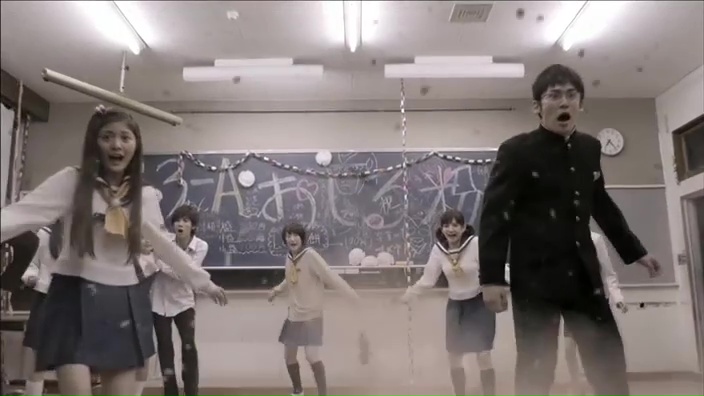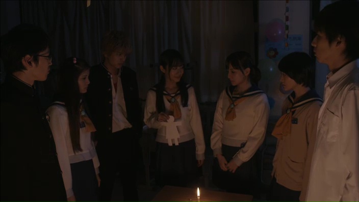 Grosso modo, c’est donc la même intrigue. Neuf personnages, composés de sept lycéens, une enfant et une professeur se retrouvent après un charme qui tourne mal dans une école primaire abandonnée et censée être détruite depuis des années suite au meurtre de plusieurs enfants. Bien entendu, l’école ne contient rien de bon, entre des fantômes, des enfants tueurs, des géants tueurs, et des éléments faits pour que nos personnages perdent la raison. Oui, rien de neuf. Par instants, le métrage tentera d’innover un peu comparé au support de base, en intégrant quelques nouveaux éléments, en faisant mourir des personnages différemment et plus tôt, mais rien de dramatique. Qui connaît le jeu ou son adaptation en OAV peut se lancer dans le film d’un seul œil, même sans sous titres.