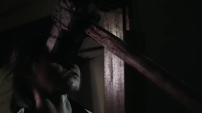 Dés les premiers instants, l’esthétique du film frappe, ça fait un peu fauché. Là où l’OAV mettait en valeur des décors délabrés, une ambiance glauque et malsaine, le film fait fauché. Certes, c’est souvent au-dessus de nombreux films fauchés, mais jamais l’impression de regarder un DTV de luxe ne quittera la vision. Mais bon, on s’en fou, nous ce qu’on veut, c’est de l’ambiance, du gore, des meurtres sacrément méchant. Si le résultat final est dans les grandes lignes fidèle au matériel de base, il faut avouer que la violence se fait moins sèche et radicale, bien que toujours aussi visuelle. En réalité, le métrage conserve défauts comme qualités du jeu et des OAV (enfin, surtout les défauts en fait…). À savoir des personnages peu intéressants, des meurtres sanglants. Amusant de voir donc la prof mourir en premier, là où elle parvenait à survivre assez longtemps auparavant sans pour autant être bien utile. Mais à côté, la violence, notamment vis-à-vis des enfants, a été atténuée, sans doute pour rendre le métrage accessible à un plus grand nombre. Bien entendu, ça gicle quand même, les têtes sont toujours écrasées, les corps démembrés ou explosés, mais dans son ensemble, le métrage perd de son impact.