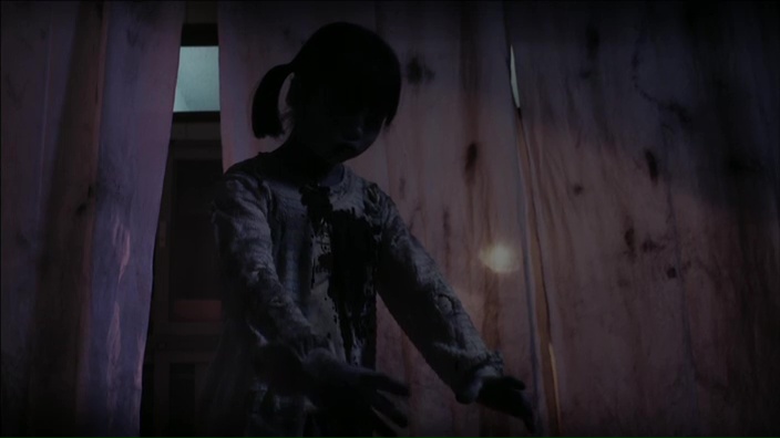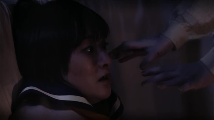 Mais là où le bat blesse, c’est dans le ton général du film, alternant donc le mauvais, le nanar et le bon. Yamada Masafumi semble par moment peu inspiré, si bien que d’une scène à l’autre, tout semble bien différent. Lorsqu’il faut faire évoluer l’intrigue où les personnages, le réalisateur semble peu à l’aise, et c’est l’esthétique très DTV, et surtout très pauvre qui ressort du titre. Oui, nous ne verrons que des personnages parler et déambuler dans divers couloirs et pièces vides. Du coup, là où l’OAV maintenait l’intérêt par son ambiance et sa tension, le film ennuie par moment. À l’opposé, dans les moments purement gore, le métrage respecte tout et se fait plutôt bon, même si plus gentillet vis-à-vis de certains personnages. Lorsqu’il s’agît par contre de poser une ambiance, Yamada Masafumi se trouve être bien plus inspiré, retrouvant à quelques instants sa flamme, comme lors des Hitori Kakurenbo. Lorsqu’il joue sur ce qu’on ne voit pas, le métrage se montre prenant et intéressant, mais dés lors qu’il doit montrer des choses, l’ensemble alterne le nanar et le sympa. Oui, le gore en lui-même sera réussi et pourra en réveillant certains, tandis que les différentes apparitions de fantômes feront plus rire qu’autre chose, et c’est clairement dommage. Au final, il est difficile de savoir à qui s’adresse le métrage. Ceux qui ne connaissent pas l’univers seront sans doute moins clément envers certains aspects du film, mais auront un œil vierge qui ne pourra pas comparer. Dans tous les cas, le résultat final est bancal.