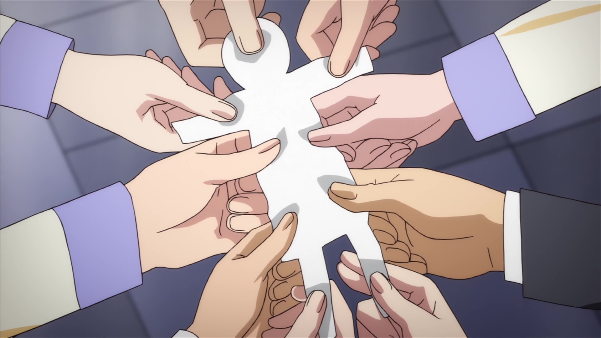 Bien avant d’être une série de 4 OAV de 30 minutes chacun, Corpse Party était un jeu vidéo. Et qui date ! Bien que la toute première version ne soit jamais sortie en dehors du Japon, Corpse Party date tout de même de 1996. En 2008, un premier « remake » nommé Corpse Party Blood Covered débarque sur PC, avant que la série ne finisse par se faire connaître en dehors du Japon avec la sortie du « remake définitif », baptisé Corpse Party Blood Covered : Repeated, sur PSP et iPhone (et au Japon, 3DS). Un jeu qui sort toujours avec de nouveaux dessins (meilleurs) de nouveaux doublages (convaincants), de nouveaux personnages et une histoire plus détaillée, et contenant toujours un mix entre exploration et dialogues façon visual novel, le tout dans une ambiance malsaine au possible, et surtout incroyablement gore. Le phénomène grandit, et l’histoire est alors développée en manga, puis en 2013, dans une série de 4 OAV qui nous intéresse ici (le tout avec une préquelle de 11 minutes sortie en 2012). Depuis, un film de cinéma en 2015, qui aurait pu être anecdotique si il n’était pas réalisé par Yamada Masafumi, le réalisateur des second et troisième opus de la saga Hitori Kakurenbo, mais là, je m’égare. Corpse Party : Tortured Souls nous parle donc de 8 personnages. Parmi eux, six lycéens dont une qui s’apprête à déménager, une professeur, et la petite sœur d’un des personnages. Alors qu’ils se décident à faire un pacte en utilisant une poupée de papier, afin de rester amis pour toujours (que c’est mignon), le sol s’effondre, et à leur réveil, le lycée leur apparaît beaucoup moins accueillant..
