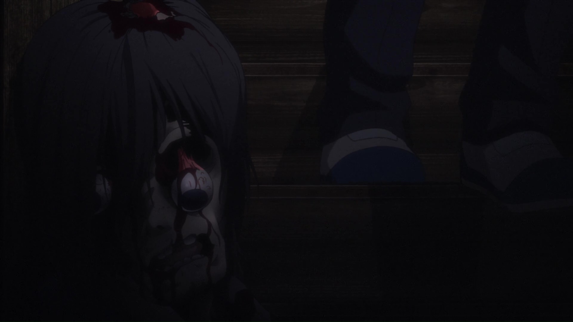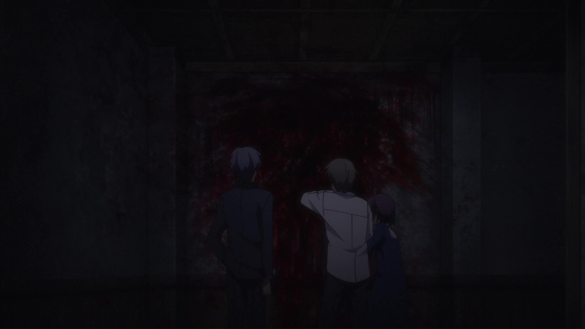 Pendant dix minutes en tout cas, pour nous présenter les personnages, peu nombreux. On les identifie tous simplement, on a immédiatement une petite idée sur qui va survivre ou pas, et qui sera important ou pas. Oui, Satoshi, Naomi et Ayumi nous apparaissent immédiatement comme des personnages importants que l’on va suivre plus longtemps que les autres, tandis que l’on comprend très rapidement que Yui, la prof, ne va pas avoir beaucoup d’importance, ou que le jeune Sakutaro est plutôt faible psychologiquement. Car les fantômes ne vont pas être la seule menace pour les personnages, qui peuvent rapidement perdre pieds et se retourner les uns contre les autres, et se retrouver eux également à hanter les lieux après leur mort. Et si l’ambiance de la série se fait souvent étouffante et très glauque, tout n’est pas parfait. On regrettera même certaines situations en début de série, avec musique douce, personnages tout souriants, ou encore des dialogues qui peuvent paraître par moment un brin déplacé. Sauf que finalement, Corpse Party fait un peu comme Higurashi No Naku Koro Ni (Hinamizawa : Le Village Maudit). Commencer doucement, de manière presque naïve et enfantine, pour mieux faire souffrir ses personnages et le spectateur ensuite.