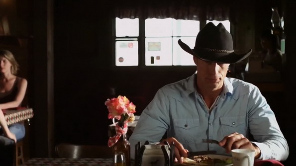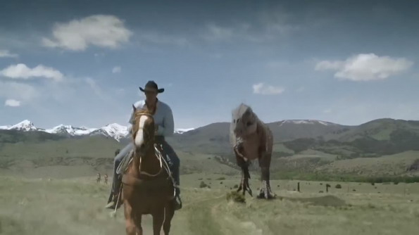 Le genre « Vs » est très répandu dans les DTV fauchés : Dinocroc Vs Supergator, Mega Shark Vs Octopus, Mega Python Vs Gatoroïd, Pegasus Vs Chimera (oui oui, tous ces titres existent), et pourquoi pas prochainement Super Castor vs Mega Canard, Pousséfor Vs Hemoroïd ou encore Pro Wrestlers Vs Zombies. Ah, au temps pour moi, ce dernier existe déjà… Bref, revenons à nos dinos euh… à nos moutons. La première entité à qui nous avons affaire ce sont les cowboys. Pas le cowboy de western de pacotille, son look dégueulasse et ses chaussures à pointe, non non, le cowboy contemporain, de l’Amérique profonde, avec tout ce que cela comporte comme clichés : chapeau façon J.R. style, qui se déplace à cheval parce que c’est plus la classe, qui capture des dinos à coup de lasso et qui fait du rodéo sur des triceratops. Oui, le ricain est très fort mais le cowboy ricain est encore au-dessus, le top du top. Alors si en plus il s’appelle Walker et que c’est un ancien Ranger, forcément on s’incline…