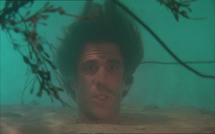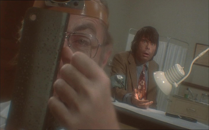 Surtout que les cinq histoires ne perdent jamais de temps en longues explications, ou expositions, tout va vite pour ne pas nous laisser le temps de souffler, alternant humour, expérimentation et horreur pure et dure. Et ces histoires sont très variées, allant de la classique histoire de zombies (pour le premier sketch, Father’s Day), à la plante tueuse (la seconde histoire avec Stephen King en bouseux), en passant par une créature étrange et gourmande, et d’autres histoires plus terre à terre à base de cafards (berk). Creepshow n’hésite jamais à aller à fond dans ce qu’il entreprend, mêlant horreur bien visuelle (les effets gores sont très nombreux) et humour noir totalement grotesque. Les premières histoires sont d’ailleurs plutôt rapides, allant à l’essentiel avec un plaisir enfantin. Voir Stephen King faire ses grands yeux, s’imaginer un futur meilleur alors qu’en réalité, il se transforme en plante, ça fait toujours plaisir. Les histoires suivantes par contre prendront plus de temps, histoire de poser un peu mieux l’ambiance, les personnages, et de pouvoir se permettre plus de ruptures de tons. L’histoire de la boite contenant une créature par exemple se permet de mélanger deux intrigues en quelque sorte, en se focalisant sur deux personnages, mettant d’un côté l’horreur pure (une créature qui bouffe tout le monde) et de l’autre de l’humour (Adrienne Barbeau en femme énervante alcoolique que son mari rêve de tuer) avant de relier le tout par la suite. Dans le même ordre d’idée, l’histoire de Leslie Nielsen s’avère différente puisque très terre à terre durant quasiment toute sa durée, avec cet homme fou enterrant dans le sable son ex femme et son amant en attendant la marée haute.