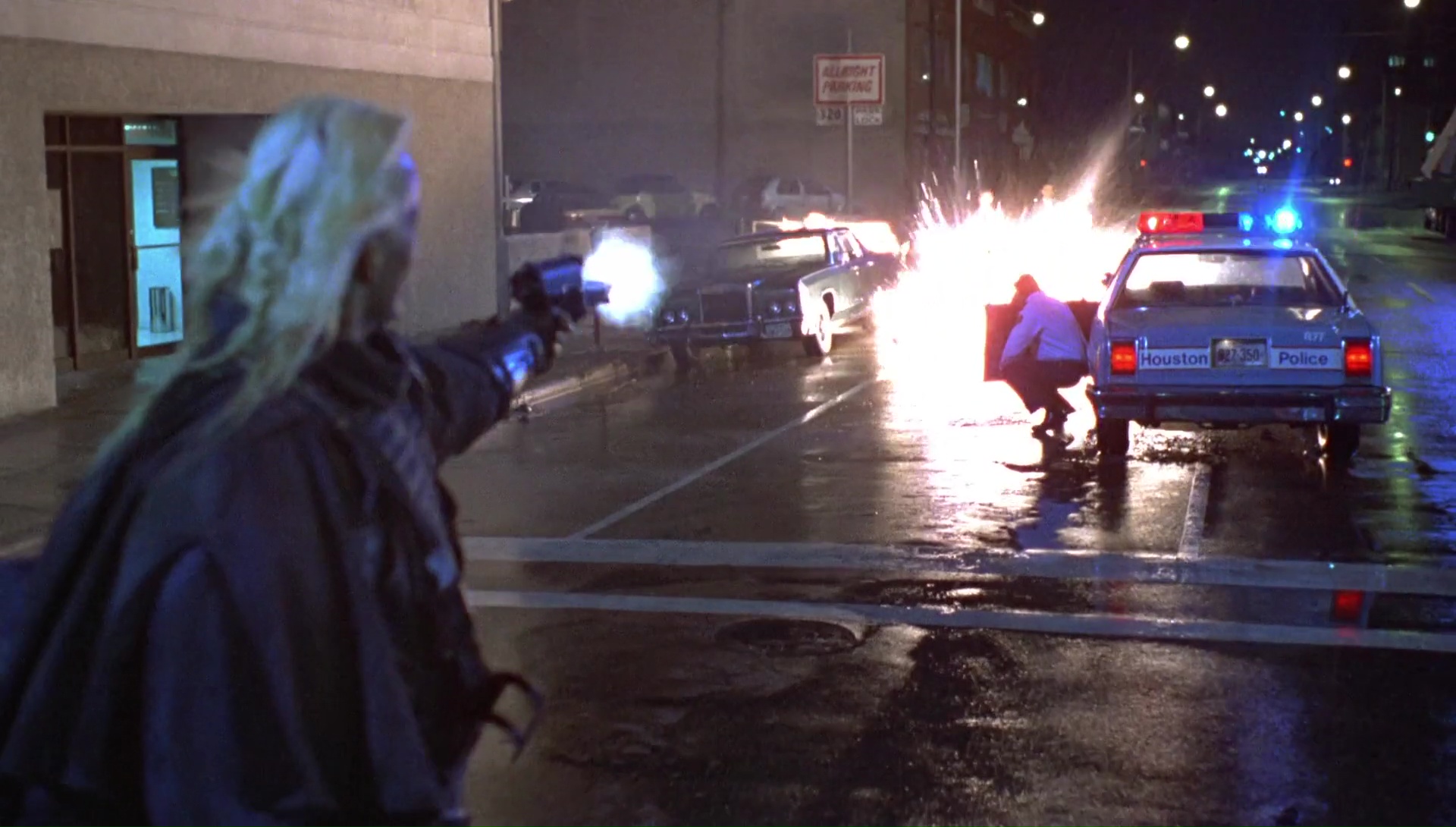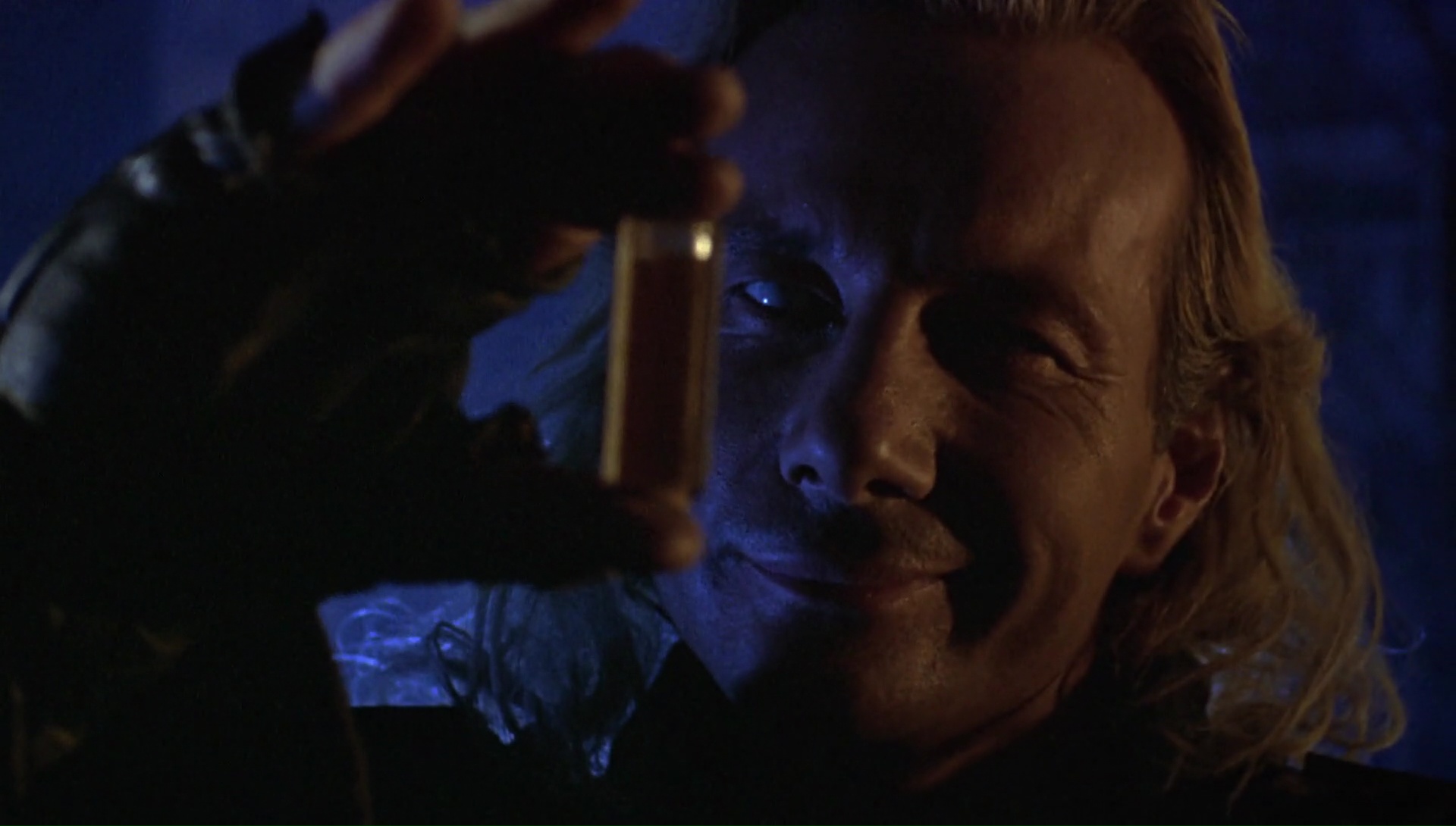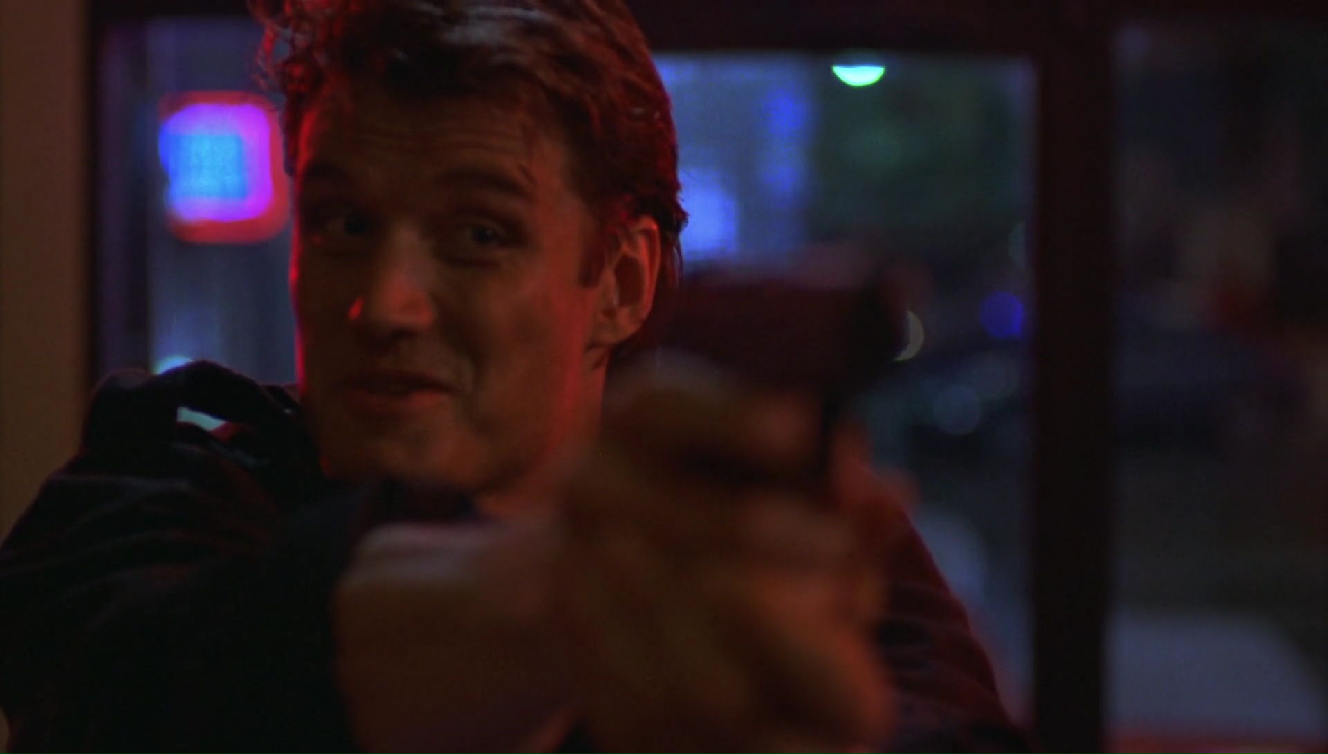 Facile, s’il est bien question d’un duo de flics, et d’un trafic de drogue, Dark Angel met en avant dans le rôle du méchant non pas un méchant Mexicain ou Colombien, mais un alien, venu sur terre pour récupérer une substance dans le cerveau de ces victimes, qui lui sert de drogue, illégale chez lui, qu’il peut donc avoir à prix coutant sur Terre. Par prix coutant, je veux bien entendu dire en tuant quelques humains, rien de bien méchant donc. Il croisera bien entendu la route de super flic lorsqu’il récupérera de la cocaïne (élément indispensable pour qu’il puisse récupérer sa propre drogue) et tuera son partenaire. Sur le papier, rien de bien original. Un duo de flic traquant un alien à Los Angeles, c’est du déjà vu. Et ce ne sont pas les quelques emprunts qui vont faire briller le script d’originalité, puisque le scénario ajoute un gentil alien, là pour traquer l’autre, ce qui peut rappeler un peu Critters. Mais le miracle s’accomplit, puisque grâce à sa générosité, un casting sympathique autant pour les premiers que seconds rôles, et finalement une technique pas si à la ramasse pour ce genre de métrage, on passe un excellent moment devant ce Dark Angel. Il faut dire que le réalisateur, Craig R. Baxley, est à la base un coordinateur de cascades, et donc il sait comment faire pour en mettre plein la vue. Des exemples sur son CV ? Les Diamants sont Éternels ou Predator par exemple, rien que ça. Il met son savoir faire à l’écran pour livrer un film efficace qui explose littéralement de tous les côtés. Niveau pyrotechnie, il se lâche, puisque les armes utilisés par nos amis et ennemis envahisseurs ont tendance à tout faire exploser sur leur chemin.