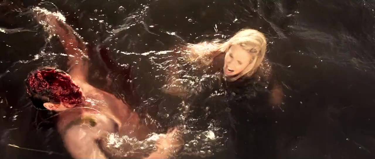 Mon premier contact avec le cinéma de Brandon Slagle n’aura pas été franchement glorieux, puisqu’il s’agissait du fauché et peu passionnant The Black Dahlia Haunting. La présence de Devanny Pinn en tête d’affiche ou des caméos de Jessica Cameron et Sarah Nicklin ne sauvaient pas les meubles. Mais j’ai persisté, et j’aurais même eu une excellente surprise avec House of Manson en 2014. La même année, il signait, encore comme scénariste et réalisateur ce Dead Sea, appartenant donc à un sous genre bien connu, à savoir celui du film de monstres. Monstre aquatique ici. Un genre dont les bobines sérieuses datent d’il y a bien longtemps. Car oui, il faut bien se rappeler qu’avant Octopus, Sharktopus et compagnie, il y avait des monstres étranges et aquatiques, comme dans Leviathan de George Pan Cosmatos, M.A.L. de Sean S. Cunningham, ou même Abyss de James Cameron. Mais tout cela, ça a 25 ans aujourd’hui. Les films de monstres aquatiques ne sont qu’une vaste blague aujourd’hui la plupart du temps. Et c’est dans cette optique que Brandon Slagle a écrit et réalisé Dead Sea. Et ce faisant, il éloigne totalement le métrage du film de monstre traditionnel. Oui, si vous voulez voir tout simplement une bande de jeunes qui débarquent et se font bouffer un par un par un monstre, et bien vous pouvez aller à la trentième minute du métrage, puis arrêter le film à la trente deuxième minute environ. Car Dead Sea veut se la jouer sérieux, et nous fournir dans un premier temps un script assez fournit, et qui ne tourne pas seulement autour du monstre.