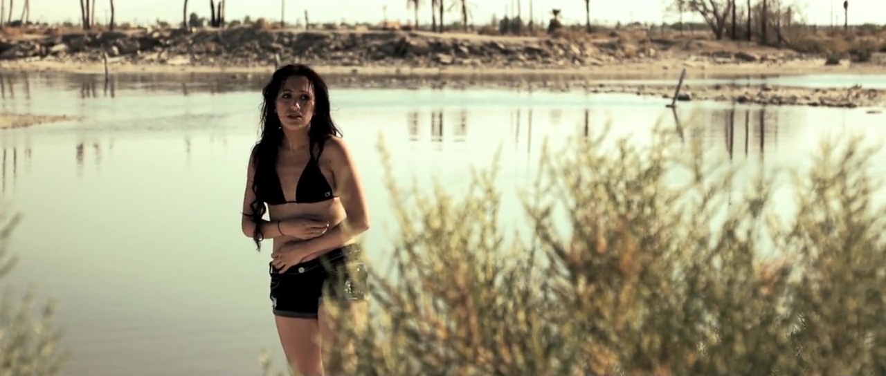 Pour preuve, passé un petit prologue se déroulant il y a 30 ans, le film reprend en Afghanistan en pleine fusillade. Oui, aux premiers abords, on ne comprend pas trop et on se dit que Dead Sea veut bouffer à tous les râteliers. Surtout que cette ouverture est loin d’être parfaite. Le fameux prologue 30 ans en arrière m’aura même bien fait flipper, puisque si j’aime retrouver à l’écran Ryan Kiser (Truth or Dare de Jessica Cameron), le mixage du film semble à côté de la plaque, avec une musique et des effets sonores camouflant totalement les dialogues. Oui, j’ai eu très peur, heureusement seule cette scène d’ouverture semble avoir souffert de ce désastreux traitement, le reste se faisant beaucoup plus professionnel, agréable, et bien supérieur donc à The Black Dahlia Haunting. Devanny Pinn d’ailleurs retrouve un rôle ici, moins important mais elle reste toujours aussi charmante. On trouvera également dans la première partie un petit caméo de James Duval, présent dans bon nombre de petits rôles, et ayant marqué certains spectateurs (moi) pour son rôle du lapin dans Donnie Darko. Bref, passé cette introduction qui fait peur, le film s’améliore clairement et se montre même plutôt ambitieux dans ce qu’il raconte. Non pas que son propos soit exceptionnel, loin de là, mais il essaye de le faire bien, et surtout de ne pas laisser de fausses notes anéantir son histoire.