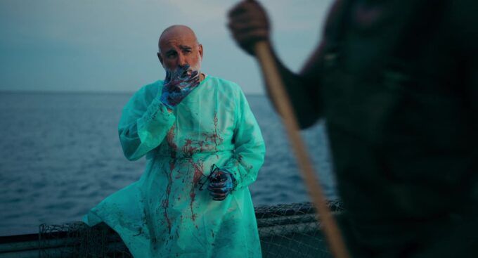 D’ailleurs, il faut bien le souligner, le premier souci que Dead Sea a concerne son ouverture. Non pas qu’elle soit particulièrement mauvaise, bien qu’elle ne déborde pas d’originalité, avec Kaya qui a un père porté sur la boisson, s’occupe de son petit frère malade, se laisse entrainer par sa meilleure amie Tessa. Mais Dead Sea n’arrive pas vraiment à pleinement nous accrocher. Manque de temps, de budget, de talent ? Difficile à vraiment déterminer. Son écriture ne montre pas d’originalité mais n’est pas catastrophique, son budget semble limité mais la mise en scène n’est le plus souvent pas non plus catastrophique également, les acteurs sont peu nombreux, et en plaçant son intrigue en mer, le film limite donc les extravagances, limitant la plupart du temps son récit à un bateau et la mer aux alentours. Là où par contre tout cela est plus flagrant, c’est lors de l’accident de jet ski qui fait démarrer véritablement le film, et qui est clairement raté, avec ses plans ultra rapprochés qui donnent un côté brouillon à l’ensemble, comme si le réalisateur n’avait pas eu les moyens de mettre ça en boite correctement, ou tout simplement pas le temps. Les plans s’enchaînent, ça n’a strictement aucun impact, et tout cela paraît totalement maladroit, avec une chute, puis un accident, qui surviennent sans trop de raisons, comme si tous les personnages étaient devenus sourds et aveugles afin de permettre ce tour de passe-passe scénaristique et justifier l’heure restante du film. Heureusement, oui, l’heure restante se fait d’un bien meilleur niveau, puisque jouant donc sur la tension et donc n’ayant pas à impressionner le public par des cascades ou autres. Juste des personnages, en particulier Kaya, qui tentent de survivre face à Rey, le sauveur pas si gentil que ça, et au Doc qui vient le rejoindre pour récupérer quelques possibles organes sur les jeunes. Encore une fois, rien de forcément original, mais le film se tient alors, et en resserrant son propos, diminuant le nombre de personnages et en jouant alors sur le classique jeu de chat et de la sourie entre Kaya et Rey, ça fonctionne bien mieux.