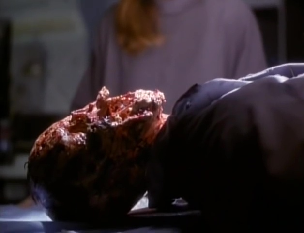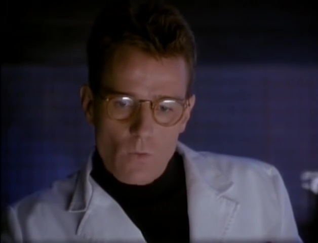 Le plus surprenant est de découvrir dans son premier rôle au cinéma un tout jeune Bryan Cranston. Enfin, tout jeune, juste quelques rides en moins, un peu plus de cheveux, mais déjà ses lunettes. Ce rôle, je suis sûr qu’il n’est pas trop fier de le mentionner dans son CV, surtout que le rôle est plutôt important, et assez con puisqu’il joue le scientifique à cause de qui tout arrive ! Sacré Bryan ! Mais au delà de tous ces clichés, de ces moments un peu ratés, de ces personnages peu intéressants, Dead Space se fait généreux, avec une pointe de gore, une bestiole souvent présente, et surtout ne perd pas de temps. 15 minutes après le début, et la créature arrive. Le métrage tentera même de nous la montrer dans son intégralité autant que possible avec le budget alloué, et c’est plutôt sympathique. Bien entendu, le spectacle proposé n’a rien de grand cinéma, mais occupera sans souci une heure lors d’un dimanche pluvieux, pour revoir des têtes connues, voir des monstres en latex, des répliques venues d’autres films (le robot sortant « pas mal pour un humain », ça me fait penser à Aliens le Retour tiens), un héros torse nu qui va forcément s’en sortir et avoir une liaison avec la première nana du casting, un scientifique un peu con et qui du coup doit forcément mourir dans le dernier acte. Oui, c’est du gros B sans ambitions, mais divertissant.
