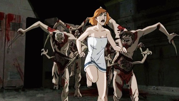 Le carnage peut donc commencer, puisqu’à partir de là, Dead Space Downfall n’est qu’un banal survival dans l’espace. On y suit principalement la chef de la sécurité et son équipe qui vont devoir survivre dans les couloirs à une invasion venue d’ailleurs. Et là, on y retrouve les principaux ennemis du jeu, avec les nécromorphes de base, les plus gros, les volants qui réaniment les cadavres, et les minuscules petits à tentacules. Rapidement, notre équipe va s’équiper de cutter plasma pour survivre. Oui, tous les éléments du jeu sont présents, en apparence, sauf que jamais ce métrage d’animation ne parvient à en restituer le cœur, l’ambiance, ce qui faisait de Dead Space un bon jeu. À la place, c’est une avalanche de gore qui laisse plutôt indifférent. Décapitations, corps transpercés, démembrés, découpés. Un festival qui ne semble pas vouloir s’arrêter, mais qui ne parvient pas à sauver le navire du naufrage presque total. Oui, ce n’est pas hyper passionnant, ce n’est pas très bien animé, c’est parfois assez moche, et le concept même du film n’était pas franchement utile.