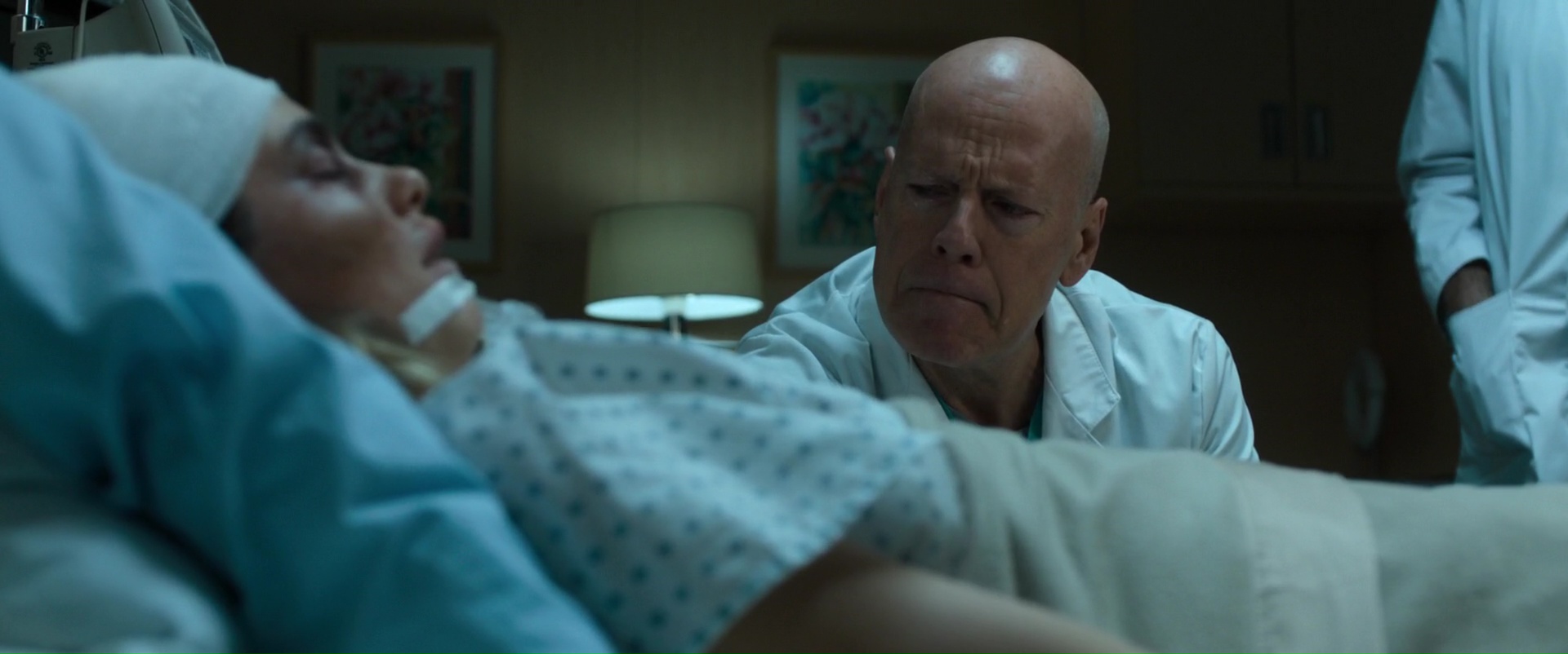 En 1972 paraît le roman Death Wish de Brian Garfield. Dès 1974, celui-ci sera adapté par Michael Winner avec Un Justicier dans la Ville, mettant en vedette Charles Bronson. Une adaptation que j’aurais vu tardivement, le mois dernier en fait. Si ce n’est pas le seul roman de Garfield à être adapté (James Wan adaptera Death Sentence en 2007, une histoire assez similaire), le succès sera là, et le film aura droit à de nombreuses suites. Un Justicier dans la Ville 2 en 1982, toujours par Michael Winner, puis Le Justicier de New York en 1985, Le Justicier Braque les Dealers en 1987 et enfin Le Justicier : L’Ultime Combat en 1994. Et là, enfin, Charles Bronson peut arrêter de se venger. Mais nous sommes des années plus tard, en 2018, et voilà qu’un remake débarque en cette belle année 2018. Des changements, il y en a, pour finalement arriver à un résultat assez similaire. Bruce Willis remplace Charles Bronson, sa femme est toujours tuée, sa fille toujours dans le coma, et il va devenir un vigilante pour se venger. De comptable dans le livre à architecte dans le film original, notre brave père de famille vengeur devient ici chirurgien. New York devient Chicago. Limiter ce remake a ses changements serait réducteur, car si la base, l’élément déclencheur et une bonne partie de la narration sont les mêmes, Eli Roth et l’armée de scénaristes (mais un seul crédité) ont changé pas mal de petits éléments pour actualiser ce remake. Est-ce que ça le rend vraiment différent, intéressant et pertinent, alors là rien n’est bien sûr. Paul est donc chirurgien, a une vie de famille qui le comble de joie avec sa femme et sa fille enfin acceptée à l’école de son choix.