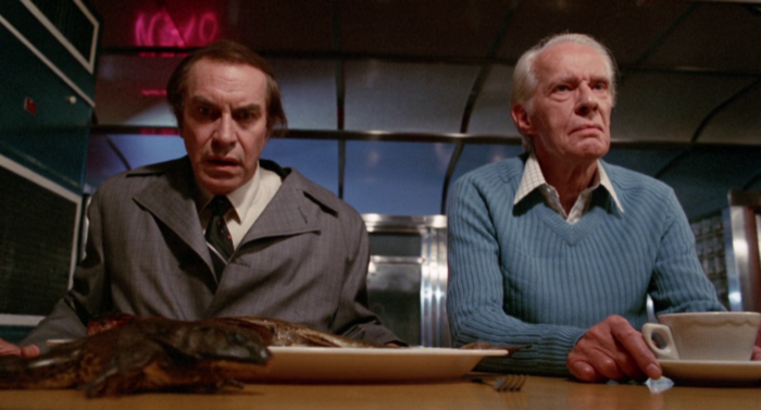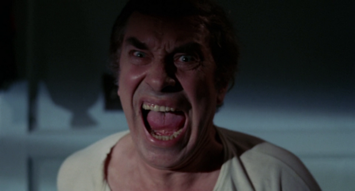Il n’empêche que les baisses de rythme sont contrebalancées par de moments horrifiques qui fonctionnent, à l’image de la séquence onirique qui ouvre le métrage, la scène ou le pédophile se retrouve seul avec la fille du psychiatre, ou celle de la baby-sitter terriblement efficace. Il est tout de même dommage que Alone In The Dark ne démarre vraiment que dans sa dernière demi-heure qui fait basculer le film dans un home invasion vénère qui contient un twist surprenant, quoique chiche en hémoglobine, et une conclusion pour le moins étonnante. Mais la plus grande qualité de Alone In The Dark, c’est son casting. S’il est composé en majorité d’inconnus, on reconnaitra Dwight Schultz (Looping dans l’Agence Tout Risque) et Erland van Lidth (Dynamo dans Runing Man) mais surtout les bonnes vieilles trognes de Donal Pleasance, Martin Landau, jack Palance. Si le premier joue un rôle relativement similaire à celui du dr. Loomis dans Halloween, Palance et Landau sont impeccables en psychopathes déchainées mais pas dénué de bon sens, du moins de leurs points de vue. Alone In The Dark est un film qui a pris du plomb dans l’aile, notamment dans son rythme qui aurait pu être un peu plus fluide avec quelques coupes dans les scènes d’exposition. Il n’en reste pas moins une péloche horrifique des 80’s qui tient la route, traversé de scènes mémorables au casting de gueule comme on en fait plus.