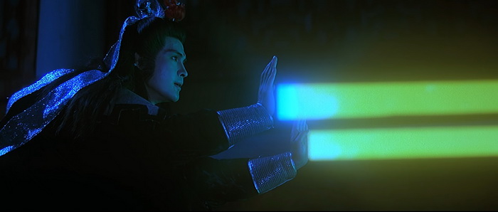 Dans la première moitié des années 80, la Shaw Brothers alors en perte de vitesse, part un peu dans tous les sens et vers tous les genres. Le film d’horreur, le polar, le drame, mais aussi le wu xia pian fantasy à tendance psychédélique. Fleurirons des films tels que Buddha’s Palm, Holy Flame of the Martial World, Portrait in Crystal, ou encore The Hidden Power of the Dragon Sabre. Et avant de réaliser ce dernier, son dernier film de sabre, Chu Yuan a mis un autre film du genre en boite, le bien nommé Descendant of the Sun, autre délire que les amateurs de bisseries du genre risquent d’apprécier. Les fans de la première heure risquent d’être déçu tant le réalisateur ne semble pas du tout dans son élément, voire parfois carrément désintéressé. Mais pour les amateurs de délires visuels sous LSD et de combats virant au grand n’importe quoi, c’est souvent un plaisir extrême de voir à quel point le cinéma de Hong Kong de cette époque pouvait aller dans la folie. Alors c’est certain, on ne peut pas dire que c’est une vraie bonne bobine, mais qu’est-ce que c’est fun !