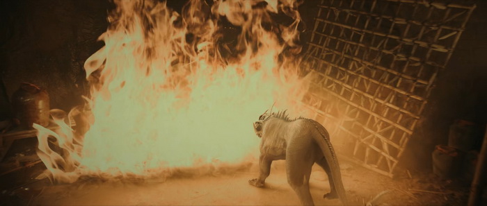 Si je cite en introduction Mutant Tiger, ce n’est pas un hasard. Desert Monster suit à quelque chose près la même construction que le film de Liu Wen-Pu. A en croire ce que j’ai pu récolter comme information sur le web chinois, ils ont été tourné l’un à la suite de l’autre. Ils auraient même été tournés dans le même studio de cinéma, au point qu’il est facile de voir que certains décors ont été réutilisés. La scène où les monstres attaquent la ville en grimpant contre le mur rappelle étonnement une scène similaire dans Mutant Tiger, mais avec des tigres. En soi, ce n’est pas bien grave, mais si comme moi vous regardaient les films à juste quelques mois d’intervalles, vous aurez sans doute cette impression de redite. On a vraiment cette impression ici de cahier des charges à respecter lorsqu’on fait un film de monstre pour les plateformes de DTV chinois et bien qu’il semble compliqué que Desert Monster ait repompé Mutant Tiger étant donné leur date de sortie relativement proche (à peine 2 mois les séparent), on sent qu’ils ont été fait dans le même moule. Mais alors me direz-vous, pourquoi ce Desert Monster écope d’un timide 5/10 là ou Mutant Tiger se paie le luxe d’avoir un 7/10 ? Pour plusieurs raisons à vrai dire. Bien que ses tigres en CGI n’étaient pas toujours très convaincants, Mutant Tiger avait une vraie direction artistique, une photographie vraiment travaillée, qui lui donnaient une vraie patte visuelle. Ici, nous sommes dans un produit bien plus quelconque qui a aucun moment ne cherche à se donner un style bien à lui. Ce n’est pas moche, c’est juste passe-partout. Et les CGI des monstres ont beau avoir été réalisés par l’équipe chinoise qui s’est occupée de ceux du blockbuster chinois The Wandering Earth, soit on ne leur a laissé que très très peu de temps, soit ils ont fait travailler les stagiaires. Mais une chose est sûre, c’est que le résultat n’est pas très très joli à voir. On sent l’envie de créer des monstres agressifs, qui font monter la pression, mais le résultat est clairement raté.