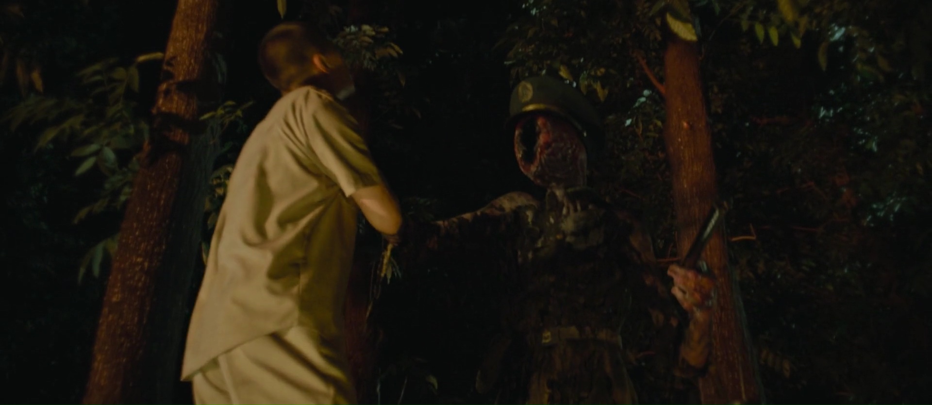 Detention donc, dés le départ, nous happe. Par sa réalité historique. Avant même qu’un quelconque élément horrifique ne débarque dans le récit, le climat du film, le climat politique et social de l’époque en réalité, nous explose au visage, et pose une ambiance lourde sur les personnages, mais du coup, sur les spectateurs également, pour peu que l’on y soit sensible. Detention, clairement, n’est pas un film joyeux, loin de là. Il se veut réaliste vis-à-vis de son sujet, et on a presque envie de dire que les éléments réalistes de son histoire, sa mise en image du climat politique et social de l’époque est bien plus flippant et oppressant que les moments horrifiques qui viendront par la suite. Ici, avoir en sa possession un livre interdit peut nous amener dans une cave pour y être torturé longuement avant de se prendre une balle dans la tête deux jours après. Dire le fond de sa pensée, pas mieux ! Ça ne plaisante clairement pas. C’est dans ce contexte bien tendu que l’on fait la connaissance de nos deux personnages principaux, la jeune Fang Ray-Shin, amoureuse de son professeur, et Wei Chong, un jeune homme amoureux de Fang, et qui fait parti du groupe de lecture, de livres interdits forcément, du professeur Chang. Sauf que le prof, c’est l’intérêt amoureux de la jeune Fang. Une histoire de trio amoureux vous me dites ? Et bien dans le fond, ça aurait été le cas, si Detention aurait été un film plus joyeux et dans un contexte différent. Car très rapidement, ça tourne mal, et ça vire à l’horreur, à coup d’école vide de nuit, de monstres divers et variés ayant un lien avec le contexte de l’époque, de scènes hallucinatoires, le tout entrecoupé de flashbacks pour bien comprendre comment nous en sommes arrivé là.