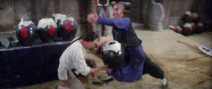 Liu Chia-Liang fait appel à son acteur fétiche, Gordon Lui donc, mais également Wong Yu avec qui il avait déjà travaillé sur The Spiritual Boxer ou Challenge of the Masters, Lo Lieh qui était omniprésent à l’époque (24 films en 1977, 26 films en 1978 !), mais aussi la toute jeune Kara Hui dans un ses premiers rôles, avec qui il collaborera à de nombreuses reprises par la suite (The Lady is the Boss, My Young Auntie, Return to the 36th Chamber, …). Liu Chia-Liang peaufine ici son mélange kung fu et comédie et ce jusque dans les combats parfois très théâtraux, façon Opéra de Pékin. Le must étant ces affrontements où les protagonistes se battent tout en faisant semblant de faire autre chose sous l’œil d’un disciple en plein apprentissage qui ne va se rendre compte de rien. Derrière une dégustation de vin ou lorsque les protagonistes admirent des œuvres d’arts se cachent parfois des combats extrêmement inventifs, mêlant arts martiaux et humour, ou encore cette scène de combat à deux, mais en fait à trois, où Gordon Lui, située derrière Kara Hui, la fait se battre contre son adversaire en lui faisant faire des mouvements. Ce genre de scènes souvent imitées par la suite dans la kung fu comedy mais rarement égalées tant la maitrise dont fait preuve Liu Chia-Liang pour mettre en place ses chorégraphies est à saluer. Cet humour cantonais pourra ne pas plaire à tout le monde tant il est particulier et bon nombre d’amateurs de cinéma de Hong Kong ont du mal avec. Mais ici le mélange est savamment dosé et même si la comédie est peut-être parfois un peu lourdingue, elle sait se faire efficace et surtout s’effacer lorsqu’il y a besoin.