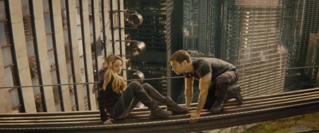 Pourtant, on y retrouve pas mal de défauts similaires. Divergent part d’une bonne idée, bien qu’archi classique et bien clichée. Un monde post apocalyptique, une société bien ordonnée où chacun à sa place, et n’a pas franchement le droit d’en dévier. Beatrice, l’héroïne, qui va devenir tout simplement Tris, vit avec ses parents dans la faction des Altruistes, mais rêve d’aventures, souhaitant rejoindre le camp des… j’ai oublié le nom, enfin, on va dire les guerriers, ceux qui protègent la société, le mur entourant la ville, tout ça tout ça. Classique mais why not, on pourrait presque y voir une critique de notre société où on nous met dans une case et on ne doit pas en bouger sinon on dérange le gouvernement. Car oui, il y a aussi les sans factions, donc les clochards du futur ! Tris va donc rejoindre la faction de ses rêves, s’entraîner, encore et toujours et… et puis c’est presque tout, car on a l’impression que ce premier opus n’est qu’une longue introduction.