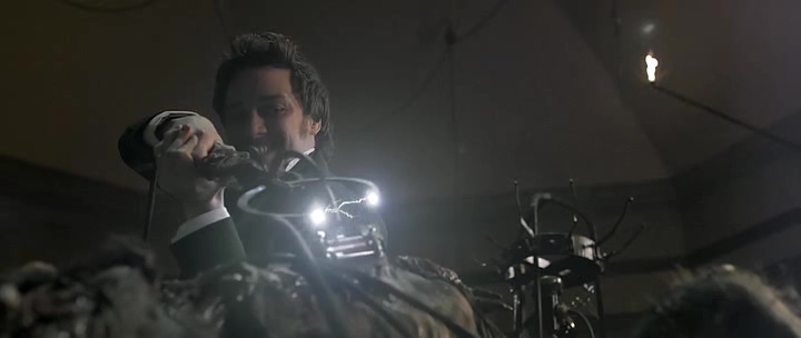 Et bien, quelle ne fut ma surprise devant le résultat final ! Car oui, si le métrage est loin d’être parfait, se plante à certains niveaux, il n’est absolument pas la bouse que je craignais, et il s’est même avéré hautement divertissant, et intéressant sur pas mal de points, même s’il effleure parfois un peu trop son sujet. L’histoire nous est donc racontée par Igor (Daniel Radcliff), individu un peu bossu, difforme même, travaillant dans un cirque, qui va être sauvé de sa pauvre condition (maltraité, uniquement là pour divertir) par le bon docteur. Ce qui frappe à première vue, ce sont certains choix visuels. Car outre une très belle retranscription du Londres de l’époque, le réalisateur fait des choix pour moderniser le récit et les personnages. Quelques cascades, ralentis, inscriptions à l’écran pour nous apprendre l’anatomie humaine, effets de styles parfois gratuits. On pourrait même comparer le métrage à ce que Guy Ritchie avait fait pour moderniser Sherlock Holmes. Sauf que Docteur Frankenstein n’est pas un film d’action, bien entendu. Le choix de nous présenter les premières expériences de Frankenstein et d’Igor, et surtout de nous raconter l’histoire du point de vu d’Igor, est une excellente idée, bien qu’à double tranchant. Son personnage fait rapidement écho à la fameuse créature du docteur, puisque si Igor se tient droit, n’est plus difforme, porte de jolis costards et peut rentrer à des soirées, c’est grâce à Frankenstein. En le rendant plus humain et en le prenant sous son aile, le docteur a créé ce qu’Igor est devenu, lui a donné du respect, en fait un homme respectable, à l’opposé de ce qu’il était au cirque.