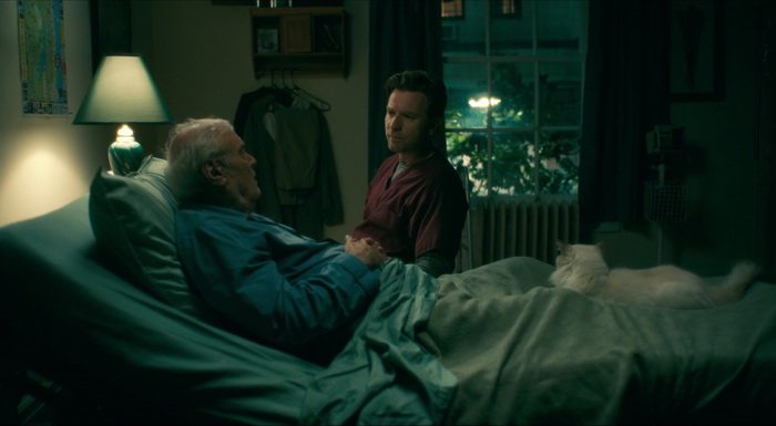 Mais Doctor Sleep est bel et bien l’adaptation du roman de King, faisant suite non plus au livre mais au film. Et Flanagan livre là une copie appliquée, une copie de fan certes par moment, mais une copie qui fait plus que plaisir, dés la scène d’ouverture, qui reprend l’identité du film de Kubrick, sans aller dans l’excès. Quelques notes de musique venues du dit métrage pour faire résonner la fibre nostalgique, et nous voilà plongé dans une nouvelle histoire, avec de nouveaux enjeux, un côté fantastique prononcé. En tant que suite au film de Kubrick, Doctor Sleep fait le choix, excepté lors de certains moments, de ne pas être un hommage facile. On y retrouvera bien des lieux, des éléments visuels et sonores, mais cela n’est jamais pleinement envahissant, et donne plutôt lieu à une suite thématique et logique, 40 ans plus tard. Le plus flagrant sera l’usage sonore d’un élément bien distinctif du film de Kubrick, à savoir les battements de cœur, qui ici changeront de vitesse en fonction des scènes, pouvant être calmes pour des scènes où la tension doit monter, doucement, avant d’être beaucoup plus soutenus par la suite. Flanagan ne cherche aucunement à copier Kubrick, et c’est tout à son honneur. À ce jeu là, il se serait de toute façon totalement planté. Il réutilise donc des éléments sonores, et laisse parfois sa caméra aller dans quelques mouvements fluides à la steadycam, mais il évite le copié collé, sauf lorsqu’il verse volontairement dedans, notamment pour le final, qui pourtant, en voulant boucler la boucle (de manière assez étonnante pour le connaisseur des deux romans), trouve sa propre justification. Et lorsque Flanagan tente de recréer des moments cultes du film de Kubrick, il n’a aucunement recours à des CGI pour modéliser un Jack Nicholson ou une Shelley Duvall, mais utilise un casting leur ressemblant, et dans certains plans, la ressemblance est frappante. Mais Doctor Sleep est avant tout l’adaptation du roman, tout en intégrant les éléments du film de Kubrick, et là, c’est une réussite également. Flanagan est un fan, on le sent, et il soigne son métrage comme pas possible. Dés le plan d’ouverture, ce long plan sans doute filmé au drone et plongeant sur une caravane, on se dit que l’on va assister à un bon film.