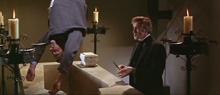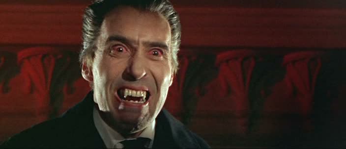 Là, les sources divergent, Christopher Lee ayant avoué refuser lire les dialogues écrits car nuls, le scénariste déclarant lui n’avoir jamais écrit de dialogues… Quoi qu’il en soit, Christopher Lee doit alors convaincre dans son rôle par sa seule présence, et y parvient sans mal. Malheureusement, c’est dés que les deux rescapés s’échappent de son château que le métrage ne raconte plus rien de neuf et ne fait que recycler les bonnes vieilles recettes. Van Helsing n’est pas là mais un prêtre le remplace, Dracula veut une femme et son mari essaye de la protéger, d’autres personnages sont sous l’emprise du maître, Dracula ne supporte pas qu’une autre vampire tente de lui voler sa proie. Oui, malgré une mise en boite sérieuse et habile (Terence Fisher hein), le métrage n’invente alors plus rien et se fait décevant, en faisant un film décevant et un peu feignant, mais pas mauvais pour autant. Pour le fan, c’est un métrage de plus pour se plonger dans cet univers gothique maîtrisé qui ne se refuse pas. Juste une petite déception.