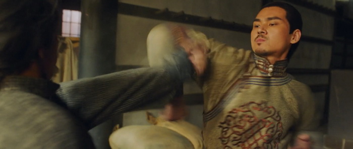 Autre chose qui fâche, c’est justement la boxe de l’homme saoul. Ici, elle est complètement accessoire étant donné que le héros ne s’en sert que quelques secondes lors du final. Et même là, les mouvements ne sont pas réellement bien faits. Aucune perte d’équilibre, aucun coup qui part de façon improbable, on se sent un peu floué car on a été attiré par le titre dans l’espoir de revoir ce style de combat aussi improbable qu’efficace. C’est dommage car malgré tout, les combats sont une des réussites du film. Bien moins hachés en termes de montage que dans beaucoup de productions du genre, avec parfois des enchainements de plusieurs coups sans coupe et une caméra dynamique, ils sont lisibles et plutôt sympathiques malgré leur faible durée. On soulignera également l’utilisation de vrais décors plutôt que des fonds verts, qui font que, visuellement, l’ensemble s’en sort plutôt bien malgré le faible budget qui semble avoir été alloué au film. Le réalisateur limite l’utilisation des CGI (et quand il les utilise, cela reste correct) et c’est une bonne chose tant ça souffle souvent le chaud et le froid habituellement. Mais c’est malgré tout bien peu si on prend le film dans son ensemble et le résultat est quand même très très moyen.