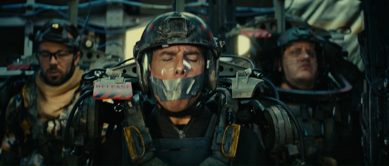 Edge of Tomorrow ne m’intéressait pas des masses. Le côté science fiction, avec Tom Cruise que je n’apprécie pas forcément et Doug Liman à la mise en scène, réalisateur qui a du potentiel mais que je trouve souvent trop brouillon, ça ne m’attirait pas. Mais parfois, comme on dit, il n’y a que les cons qui ne changent pas d’avis, et Netflix m’aura proposé le film lors d’un soir de solitude. N’ayant rien de mieux à me mettre sous la dent et aucune envie particulière, me voilà lancé, essayant de mettre tous mes préjugés de côté. Oui, Doug Liman, c’est La Mémoire dans la Peau, mais c’est aussi Mr & Mrs Smith (aie) et Jumper (méga aie). Oui, Tom Cruise, c’est l’acteur qui joue 80% du temps le même rôle, lui-même, le gars qui sauve le monde et fait lui-même ses cascades, celui qui n’a peur de rien et peut tout faire. Edge of Tomorrow se décide à bouleverser tout ça justement, et bordel ça fait du bien. Tom Cruise est un gradé de l’armée qui se retrouve contre son gré au front, ne sait pas se battre, et meurt. Oui. Et là, il revient, au début de cette journée, pour la revivre, encore et encore. Et donc pour mourir, encore et encore. Edge of Tomorrow adapte un manga et un roman, que je n’ai pas lu (ni l’un ni l’autre), mais m’aura beaucoup plus fait penser à Un Jour Sans Fin, dans le registre de la science fiction. On pourra d’ailleurs dire que le métrage aura hautement influencé le jeu vidéo Prey puisque les aliens du titre sont basiquement les mêmes, autant dans leurs aspects que par leur nom, les mimics. Bref, comme dans Un Jour Sans Fin, notre Tom Cruise va devoir revivre encore et encore la journée jusqu’à trouver comment y mettre un terme. Il sera aidé par une héros de la guerre jouée par Emily Blunt (La Fille du Train) pour traquer le mimic alpha, qui contrôle tous les aliens, et mettre un terme à la guerre.
