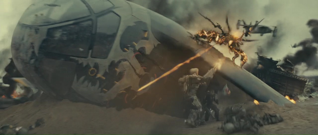 Edge of Tomorrow prend alors des allures de jeu vidéo. Tom Cruise avance, tente quelque chose, meurt, et tente une nouvelle tactique le jour suivant. Edge of Tomorrow, c’est du die & retry pur et dur. Et le film a ce côté jouissif, de voir Tom Cruise, au départ un incapable, tenter et tenter encore de survivre, et échouer, mourir écrasé par un camion, par un avion, par un ennemi, par une explosion et j’en passe. Le film a ce côté fun, voir jouissif de voir notre héros tenter des choses, prendre de l’assurance, et comprendre à la manière forte qu’il a échoué et va donc revoir son approche. Et bien que le film garde cette structure pendant quasiment 1h30, il le fait bien. Il n’ennuie jamais, il fournit le divertissement attendu, il est fun, et le film parvient même à rendre ces deux personnages principaux, Tom Cruise et Emily Blunt, intéressants. Bien entendu, pour une production de ce calibre (177 millions de budget), les effets spéciaux sont d’un très bon niveau, et Doug Liman parvient même à livrer une mise en scène plutôt solide, malgré comme d’habitude quelques moments un peu trop brouillons. Le scénario tient la route, la mise en scène fait le boulot, les acteurs sont bons, et le film se fait très rythmé, sachant quand il faut se renouveler, nous laisser un peu souffler, ou nous offrir de nouvelles morts pour notre héros, qui se transforme véritablement en héros.