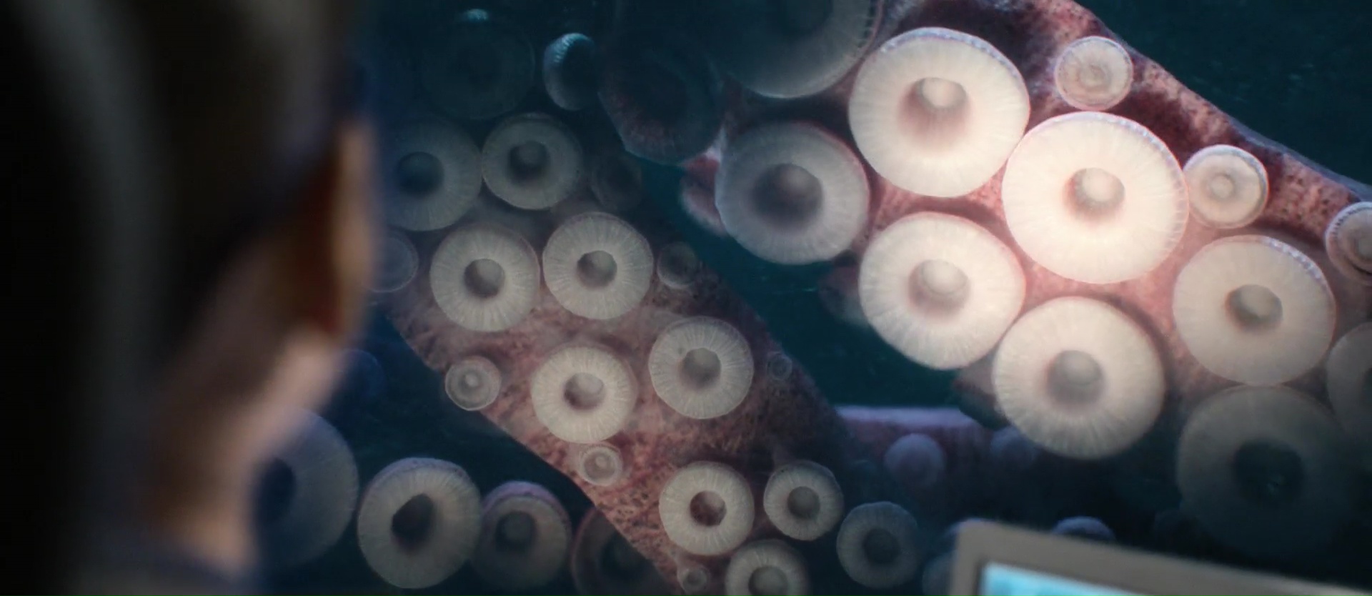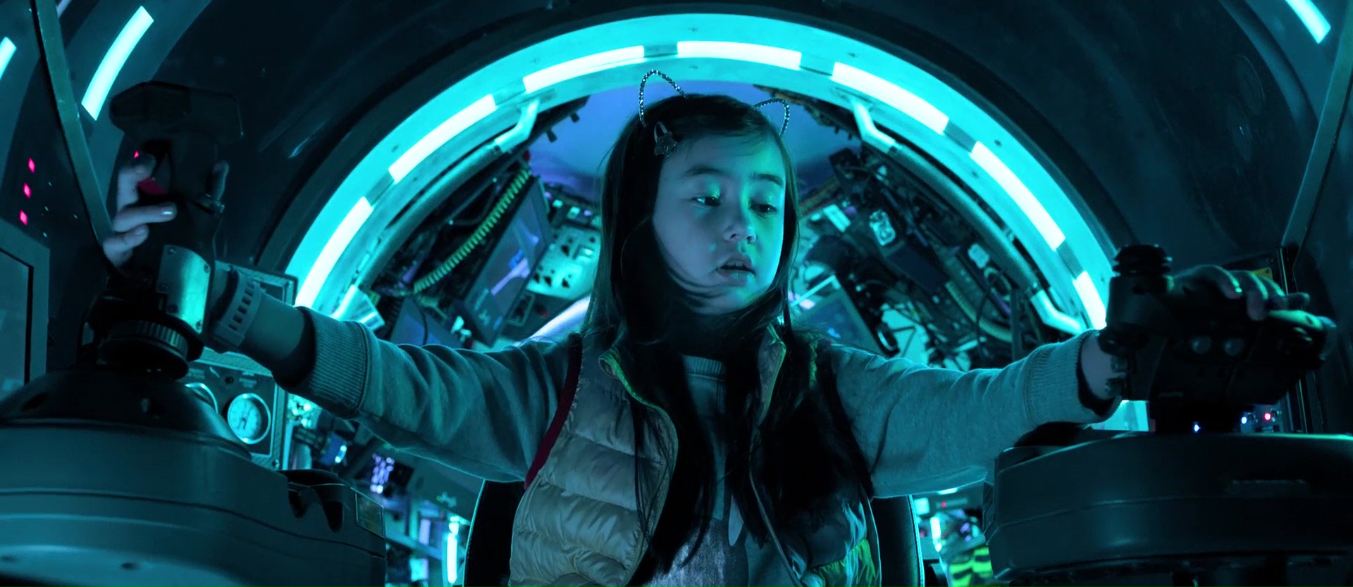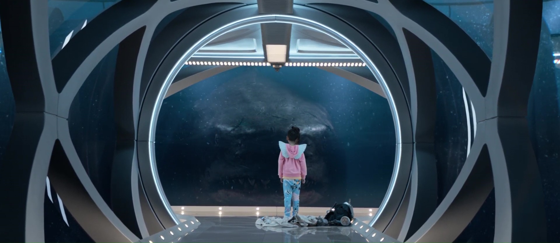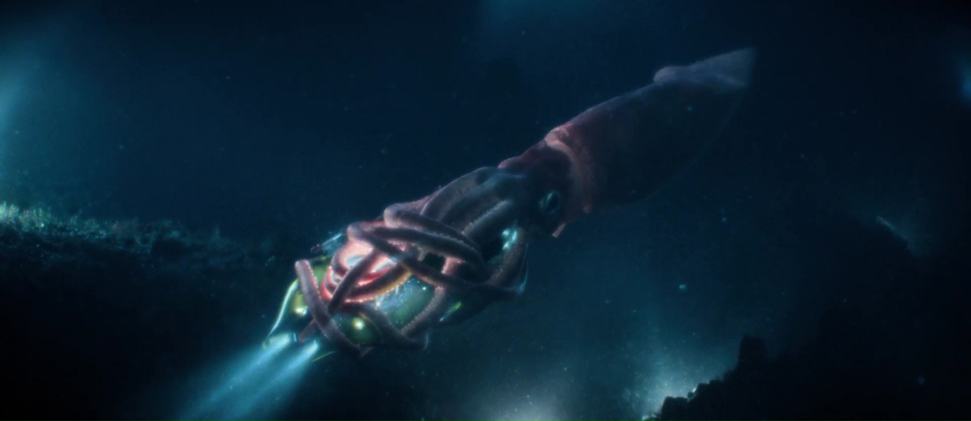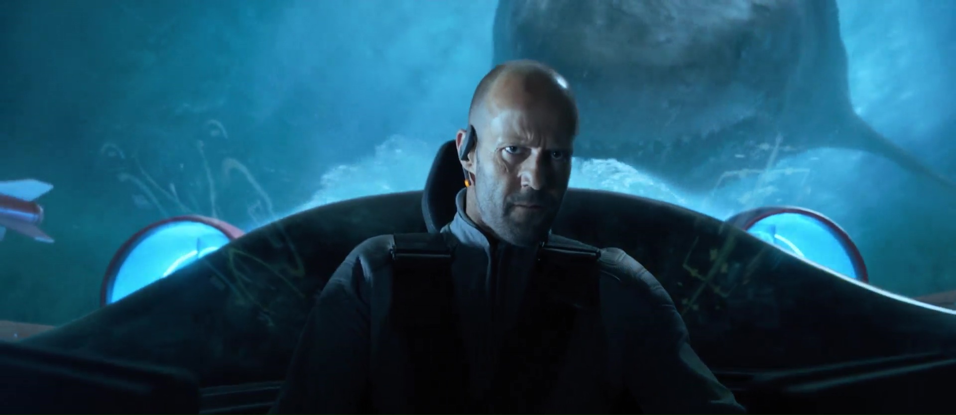 Sauf que quelque chose s’est perdu en cours de route. Ou beaucoup de choses. Ou alors l’équipe a fait ce qu’elle voulait mais ça ne fonctionne juste pas. Jamais terrifiant, jamais drôle, toujours soft, toujours prude dans tout, The Meg est un produit à gros budget calibré pour ramener de l’argent dans la caisse, mais assurément pas calibré pour être un vrai bon film. Déjà, mettre Jason Statham face à un requin, seul dans son eau, alors que le requin en question dépasse les 20 mètres, on se pose des questions. Mettre Li Bingbing dans le rôle principal féminin pour amener le public Chinois et lui donner une relation ultra prude et sans un seul baiser avec le héros, ça ne fonctionne pas non plus. Pourtant pendant quelques minutes, j’ai voulu y croire. Puisque The Meg, dans sa première partie, joue sur la suggestion. Alors oui, l’écriture est grossière, les personnages clichés, mais on sent qu’il y a du budget sans pour autant avoir tout placé dans un requin en CGI. Les décors sont grands et ramènent clairement aux films sous marin de la fin des années 80 (The Abyss, Leviathan, MAL). Et quand on a connu tout ça, un petit cachet nostalgique mais pas encore trop appuyé est présent, et fait plaisir. Jason Statham montre que son jeu n’est pas devenu plus varié avec le temps, mais il nous épargne son fameux regard « je vais te casser les rotules », sans doute car les seuls moments où il pourrait le faire, il est dans l’eau avec un masque cachant ses expressions. Mais oui, durant la première partie, j’ai voulu y croire. D’ailleurs le point de départ, avec ce véhicule explorant une partie profonde et… inexplorée jusque là des profondeurs rappelle bel et bien MAL de Sean Cunningham. Puis petit à petit, alors que le film ne raconte pas grand-chose de vraiment passionnant, voilà que le film se met à enchaîner les hommages (ou pompages).