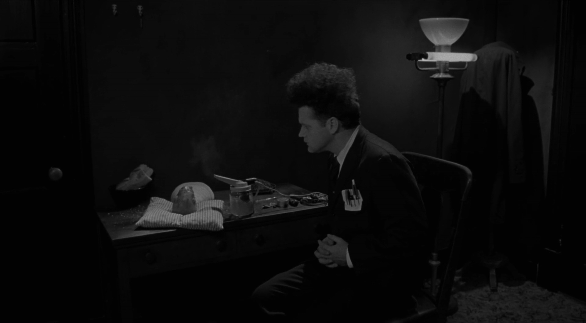 Eraserhead, c’est un cauchemar donc, souvent abstrait, et qui n’est pas forcément fait pour mettre à l’aise. Le travail sur la photographie ultra contrastée et sur l’ambiance sonore, industrielle et constante, mettent directement dans le bain. Eraserhead est un voyage dans le mental d’un homme (Jack Nance, qui réapparaîtra dans chaque film de Lynch dans des petits rôles, jusqu’à Lost Highway en 1997) qui a de grosses craintes face à ce qui lui arrive. Eraserhead parle de l’engagement, et surtout, de la naissance d’un enfant. Le fait que Lynch venait d’être père au début de la production expliquerait bien des choses, l’artiste propulsant ses propres peurs sur l’écran. Extrêmement influencé durant l’écriture par La Métamorphoses de Kafka (ça s’en ressent) puis durant le tournage par pas mal de sons qu’il aura lui-même enregistré avec Alan Splet, Lynch nous balance dans son cauchemar éveillé, dans le quotidien de son personnage tourmenté, effrayé par la sexualité, par la parentalité, et sombrant dans la folie, alors qu’il se retrouve seul à devoir s’occuper de son bébé difforme, et qu’il imagine une femme étrange qui chante dans… son radiateur. Dis comme ça, aucun doute, nous sommes bien chez Lynch, et dés son premier métrage, le réalisateur nous présente son univers hors norme, et met en place des éléments qui seront des clés de son cinéma. L’usage du son qui devient aussi important que l’image dans ce qu’il raconte et surtout dans le malaise provoqué, le sol du hall de chez Henry qui est le même que celui des années plus tard de la Red Room dans Twin Peaks, une lenteur hypnotique, et surtout, des lumières qui parfois, s’éteignent et s’allument sans raison. Un Lynch donc libre de créer et de laisser libre cours à son imagination, et beaucoup plus proche de ce qu’il fera passé Twin Peaks que de ses métrages des années 80, comme Elephant Man, Dune et Blue Velvet.