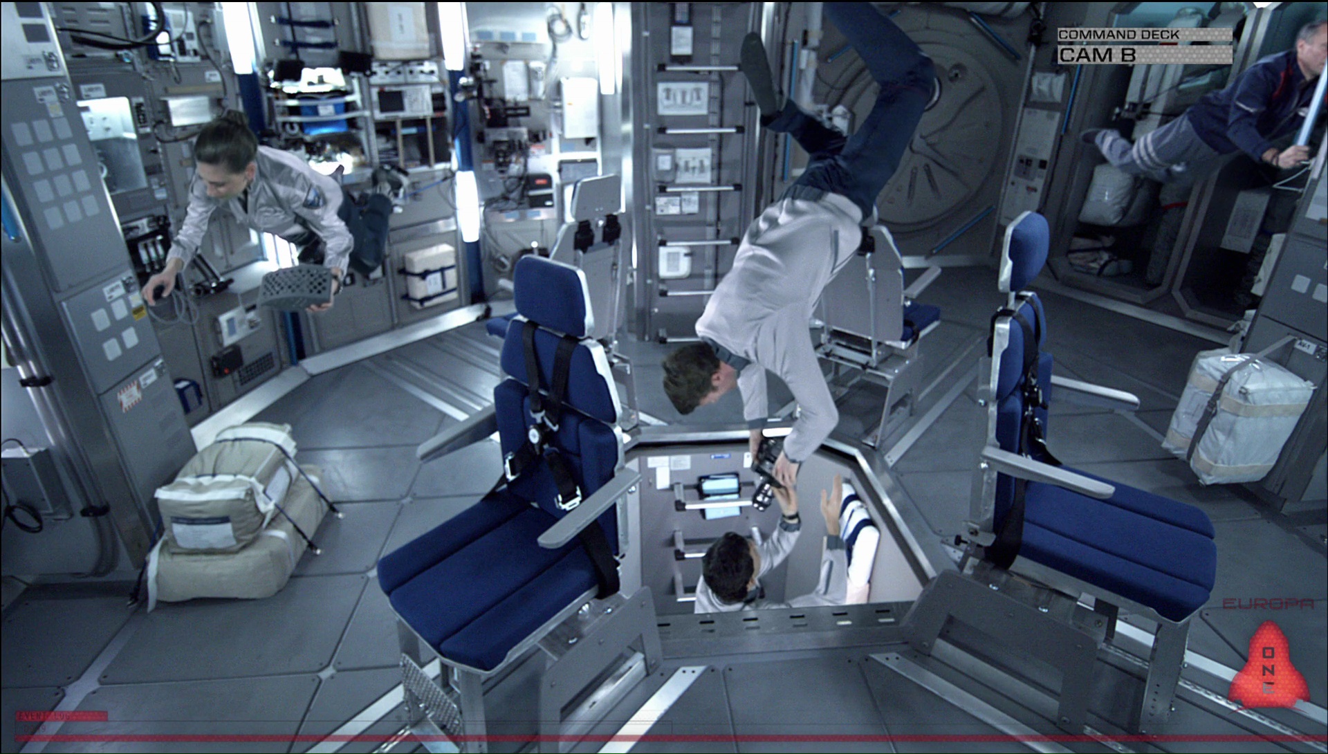 Depuis quelques années, la science fiction revient en force. Prometheus, Alien Covenant, Blade Runner 2049, Ghost in the Shell, Premier Contact. Même les films oubliés ont droit à un reboot/suite comme Moontrap avec l’ignoble Moontrap Target Earth. Le found footage lui a aussi été faire un tour dans l’espace, avec Apollo 18 de Gonzalo Lopez-Gallego en 2011. Après donc l’exploration de la Lune en found footage, nous voilà ici avec le found footage sur une des lunes de Jupiter, à savoir Europe, comme le titre nous l’indique, même si à voix haute, j’ai toujours envie de dire Europacorp et non pas Europa Report, mais bon, c’est un autre débat. Je ne savais d’ailleurs pas qu’il s’agissait d’un found footage avant de me lancer dans le métrage. Le spectateur est donc invité à suivre une équipe d’astronautes dans leur voyage, depuis le décollage jusqu’à leur mission, le tout filmé par les caméras à bord de leur navette, puis les caméras de leurs casques lorsque ceux-ci sortent dehors. Et première constatation, le film prend vraiment des allures de documentaires comparé à nombre de found footage, et donc ne se la joue pas caméra Parkinson et illogique. Pas de tremblements à répétition, pas de personnages qui gardent leur caméra alors qu’un gros danger est devant eux. Un plus indéniable pour le film pour le rendre digeste. Et même par moment intéressant, car si Europa Report n’est pas le film du siècle, et ne renouvelle en aucun cas le domaine de la science fiction, ni du found footage d’ailleurs (mais est-il possible de renouveler un genre qui ne propose quasi rien ?), il est suffisamment solide pour plaire aux amateurs du genre.