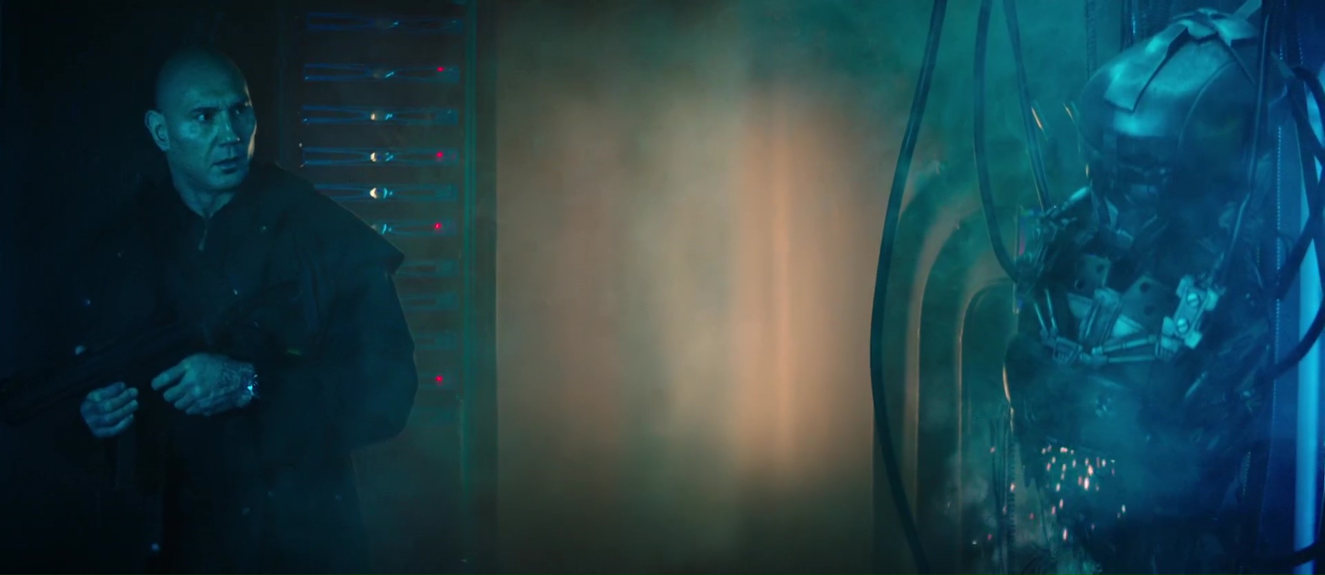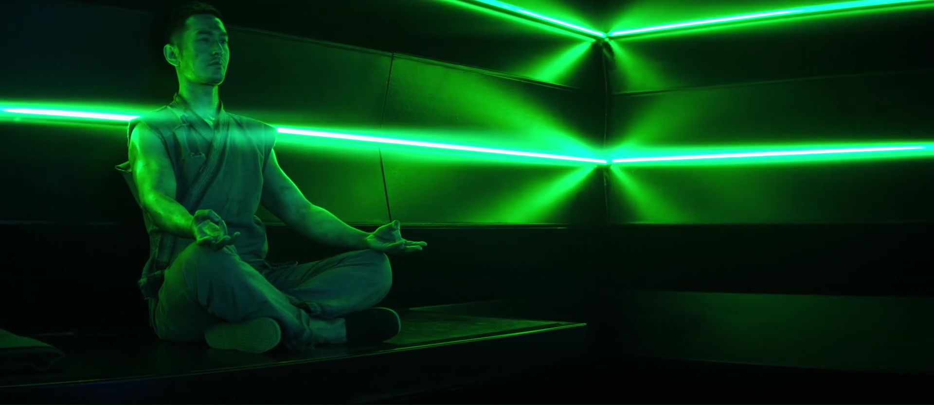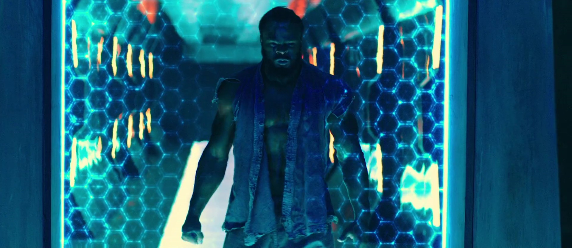 Et malheureusement, sa participation à la carrière de Stallone ne sera pas inoubliable, car Escape Plan 2 (ou Evasion 2 en VF) est mauvais à quasi tous les niveaux. Stallone sera donc en arrière plan, tout comme Dave Bautista avec qui il est censé partager l’affiche, et notre héros du jour sera Huang Xiaoming, que l’on a pu apercevoir chez Wilson Yip (Ip Man 2), chez Andrew Lau (The Guillotines), Wong Jing (The Last Tycoon) ou encore chez John Woo (The Crossing). Et en se renseignant un peu, on comprend rapidement ce choix, car Escape Plan, bien que sympathique, n’a pas été un grand succès. C’est grâce à la Chine que le métrage a réussi à rentrer dans ses frais. Du coup, pour cette suite, rien d’anormal à voir qu’il s’agît d’une co-production avec la Chine, et que notre héros soit Chinois. Voilà, le cours d’histoire est terminé, revenons au métrage. Car si tout cela explique la direction de ce second métrage (marché chinois, coproduction, budget plus petit, sortie DTV), et bien la qualité du produit sous nos yeux reste indéniablement discutable. Voir non, c’est mauvais. Scénario confus, personnages transparents, mise en scène peu inspirée (et oui, foutre des néons partout, si la qualité n’est pas au rendez-vous, ça ne me rendra pas clément), et un montage chaotique de chez chaotique. On passe d’une scène à l’autre sans raison, les scènes d’action sont souvent trop découpées et débarquent également sans franchement que l’on sache leur but, pourquoi elles sont là. On passe d’une scène en prison à une course poursuite (molle) en voiture, mais sans raisons. Et dans tout ça, Stallone reste derrière son bureau, sors son flingue de temps en temps, et nous balance des phrases sans trop savoir ce qu’il fait là.