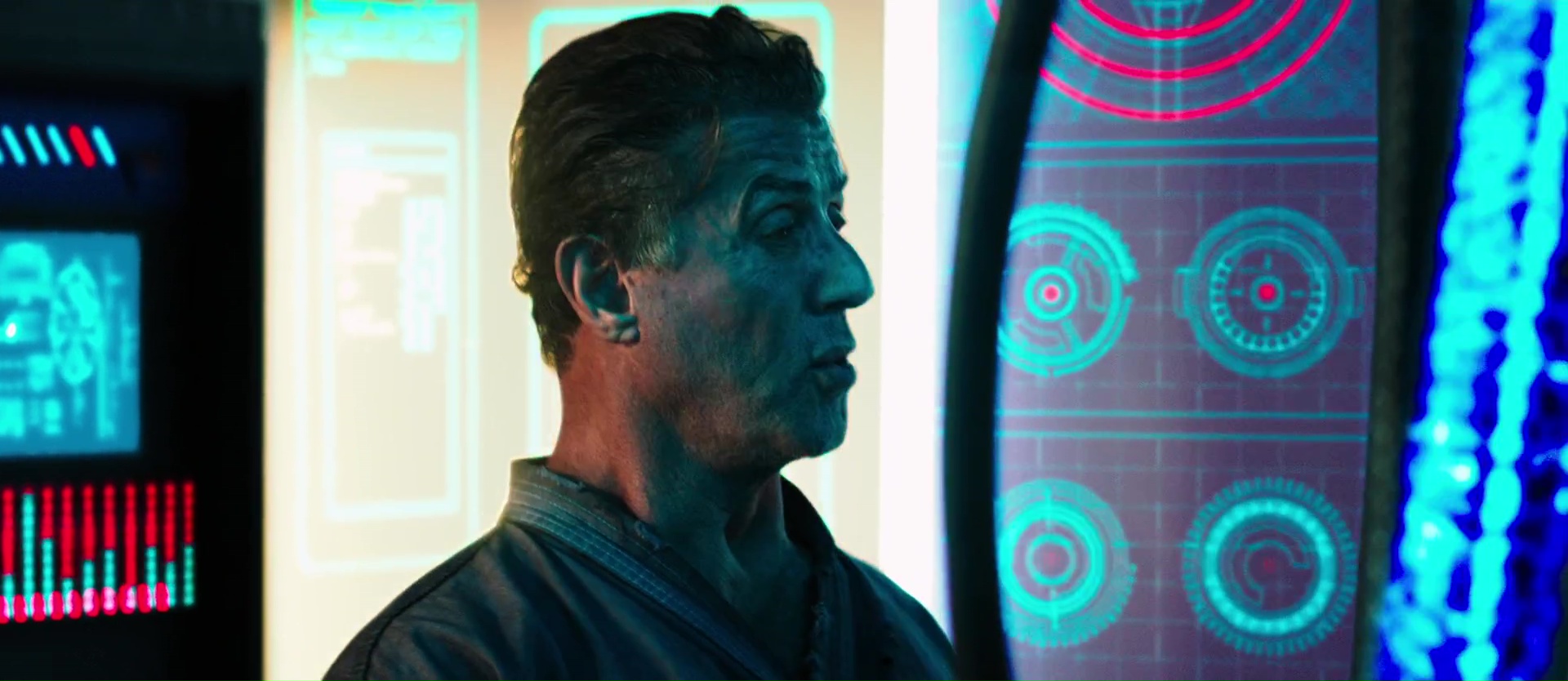 Du coup, ce Evasion 2 devient très rapidement pénible à regarder, puisque l’on n’arrive jamais à comprendre l’intérêt du film, ce qu’il s’y passe, et pourquoi ce qui arrive arrive véritablement. On a notre nouveau héros enfermé dans une prison (on ne saura que plus tard pourquoi, la routine, on est habitués), le tout éclairé par des néons aux couleurs vives, et puis voilà, on a le méchant gardien, le tout géré par une intelligence artificielle (c’est dans l’ère du temps on me dira) qui en fait ne fou rien de tout le film, et la prison, c’est l’anarchie, on force les prisonniers à se battre entre eux, et le gagnant aura droit à une heure en aire de repos avec musique douce et livres. L’idée aurait pu être sympa, mais au final, le tout est tellement peu exploité que non, rien à faire. On suit une aventure proche de l’intérêt néant, où même lorsqu’il se passe quelque chose, on reste comme à la porte du film. L’action, malgré la présence dans le premier rôle d’un artiste martial, n’est pas exceptionnelle, souvent expéditive, et l’ensemble est souvent filmé de beaucoup trop près, avec une steadycam ne rendant pas toujours l’action lisible, et le tout pas franchement aidé par le montage, allant du chaotique à l’illisible, et semblant souvent laisser passer tous les faux raccords possibles et imaginables. Même Stallone semble peu concerné et juste présent pour toucher son chèque, car après tout, s’il est crédité en premier au générique, ce n’est pas pour son temps de présence à l’écran, mais bien parce qu’il était le mieux payé sur le film. Triste.