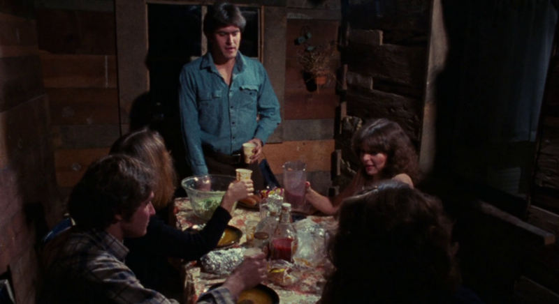 Au final que dire d’autre si ce n’est que Evil Dead est un grand film d’ horreur, le meilleur même pour certains. Le métrage qui a électrisé Cannes, puis le monde, est un film séminal, mieux que ça : il fait partie de ces œuvres qui ont créées le cinéma des années 80 et bien plus encore car la trace qu’a laissé la saga Evil Dead n’a jamais vraiment disparu, ne serait-ce que pour l’influence et l’aura qu‘elle continue de dégager ou la saga en elle même qui est actuellement en pleine renaissance après un retour remarqué la décennie précédente. Pourtant, Evil Dead est un film fauché, on parle de 350,000 Dollars récoltés ici et là. D’avoir un certain Stephen King qui y a vu le futur du film d’horreur (et il avait raison), ça aide, mais surtout, parmi les bandes sans le sou destinées à alimenter le marché des vidéo-clubs suite au boom de la VHS, celles qui ont réussis à se frayer un chemin jusqu’en salle incluses, aucune d’entre elles n’avaient de magicien derrière la caméra. Evil Dead, c’est la naissance d’un réalisateur hors normes, au style unique souvent imité mais jamais égalé, influence de toute une génération et général de toute une armée de fanboys : Sam Raimi. Le pitch est simple : cinq amis passent un week-end dans une cabane dans laquelle ils réveillent des démons. Ce scénario banal, Sam Raimi va le transcender dans un délire aussi bien visuel que graphique, un véritable tourbillon d’inventivité et de gore qui ne fait que de se bonifier avec l’age.