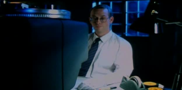 Evil Ed, c’est un film fait par un passionné du cinéma de genre, pour les fans du genre. Aucun doute là dessus, puisque la mise en abîme tout comme les nombreux, très nombreux clins d’œil sont énormes et présents du début à la fin. Le film prend des aspects de farce gore et potache dés les premiers instants, qui va en irriter certains et en faire jubiler d’autres. Il faut dire que sa scène d’ouverture frappe fort en surjeu des acteurs, tous en roue libre totale, mais également en gore et humour bon enfant. Un monteur de films d’horreur pète les plombs (littéralement), en criant et surjouant, et alors que son patron ouvre la porte, celui-ci se fait exploser la tête avec une grenade. Giclées XXL sur les murs et sur le producteur, qui, après s’être nettoyé les lunettes (très important), lancera un « tu es viré ! ». Du grand art, qui montre le ton décomplexé du film. Puis on nous présente notre anti héros, Ed, qui va devenir monteur pour ce dit producteur, sur des œuvres Z totalement décomplexées, et surtout extrêmement gore.