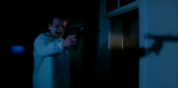 C’est souvent très mal joué, et le film ne raconte pas grand-chose, si bien qu’il pourra entre deux scènes ennuyer. Le réalisateur, également coscénariste, offre parfois quelques bons plans et s’appliquent à créer une ambiance (avec énormément de filtres bleutés), il ne parvient pas à masquer son manque de consistance au delà de l’hommage. Amusant au début, cet aspect devient gênant dans la seconde partie du film, où pour atteindre la durée réglementaire des 1h30, il rajoute artificiellement des personnages à son intrigue, des personnages qui sortent d’on ne sait pas trop où. Ed devient fou, tue son employeur, et ça aurait pu s’arrêter là. Mais non, il reste encore 40 minutes. On nous rajoute donc deux voleurs armés de mitrailleuses qui débarquent sans prévenir dans la maison (pourquoi cette maison, pourquoi cette nuit là, on n’en sait rien), puis un final dans un hôpital avec un commando de militaires pour éliminer Ed. Commando qui bien entendu, visera la plupart du temps à côté, même à bout pourtant et dans un couloir vide, avant un hommage ultime mais au western cette fois. Oui, Evil Ed demeure sympathique même s’il tourne rapidement à vide. Un défouloir gore pour le fan et le fan seulement, qui pourra s’amuser du film et de ses défauts.