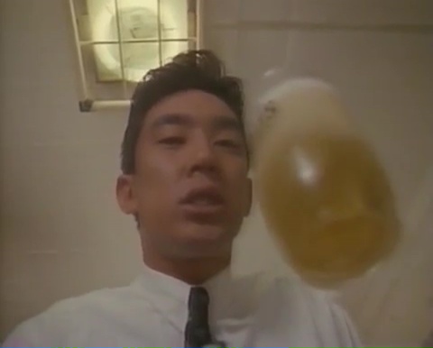 Eyecatch Junction, en voilà bien là une rareté intéressante, puisqu’il s’agît du second film réalisé par Miike Takashi, mais du tout premier à être arrivé sur les écrans. Enfin, sur les écrans ! En vidéo club plutôt, Eyecatch Junction étant un produit vidéo. Sortant en Octobre 1991 (ça ne nous rajeunit pas), Eyecatch Junction est une comédie policière. Et pour ses débuts, Miike prouve déjà qu’il n’en fait qu’à sa tête car si dans les grandes lignes, son film est bel et bien une comédie policière, avec ce que cela implique de gags plus ou moins réussies et de scènes d’action plus ou moins fauchées mettant la gymnastique en avant (et oui), son métrage n’hésite pas, le temps de quelques scènes, à partir dans un registre radicalement différent, et autrement plus sombre et provocateur, à base de meurtres au couteau avec gros plans sur les blessures, de tentatives de viols, et surtout, d’une scène de sexe plus ou moins osée et étrange, à base de couteau et de bâche en plastique transparente. Mais revenons au commencement. Après avoir été assistant réalisateur de 1987 à 1991 sur plusieurs métrages, dont de manière plutôt surprenante Peacock King et Saga of the Phoenix de Nam Nai Choi, Miike se lance dans la réalisateur en cette année 1991 avec déjà deux métrages tournés d’affilé. En premier lieu, Red Hunter : Prelude to Kill (dont je tenterais de vous parler bientôt) qui sort au Japon le 21 Décembre de la même année, et ce Eyecatch Junction qui nous intéresse ici. Un film où Miike semble pourtant très éloigné de son style futur, de ses préoccupations habituelles. Un film donc en apparence léger, avec ces flics qui affrontent des criminels en tenue de gym fluo.