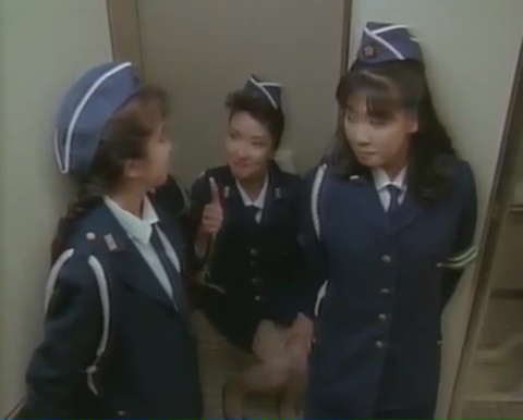 La majeure partie du temps, le film s’apparente à une comédie assez classique, avec les filles qui s’entrainent plus ou moins efficacement, épiées par les hommes, pour la plupart dépeint comme étant de gros pervers. Pas pour rien qu’une de leur enquête va les amener à poursuivre un voleur de petites culottes. L’histoire n’est que prétexte, s’avère plutôt lente pour laisser l’humour s’exprimer, et surtout le trio d’actrices principales, plutôt mignonnes par ailleurs. Des blagues, de l’entrainements, quelques enquêtes au choix amusantes et délirantes ou plutôt anecdotiques, avant que le film, mi-parcours, ne nous présente son grand méchant. Et quoi de mieux pour nous le présenter qu’une scène de sexe fétichiste assez étrange qui n’a, dans les faits, aucunement sa place dans le métrage ? La folie Miike déjà en place ? Ou tout simplement une envie de dramatiser enfin un peu des événements ? Sans doute pas le dernier point, puisque niveau intrigue et surtout suspense, Eyecatch Junction n’est pas dans son élément. Le suspense est même aux abonnés absents ici. Même lorsque les flics viennent voir une scène de crime, Miike tourne le tout en dérision, avec ce flic en profitant pour nous prendre un plan culotte de la victime en photo en soulevant sa jupe. Étonnement d’ailleurs, ces moments comiques venant d’on ne sait où apportent un petit plus au métrage qui sinon serait tombé totalement dans l’oubli des nombreux produits vidéo. Miike essaye quelques mouvements de caméra intéressants, ou même des effets de montages qu’il usera jusqu’à plus soif par la suite (notamment sa manie de couper des bouts au sein d’un même plan, ou d’utiliser plusieurs fois le même plan de suite pour un effet comique de répétition). Ça fonctionne, et à deux reprises, Eyecatch Junction m’aura fait rire. Pas sourire, rire.