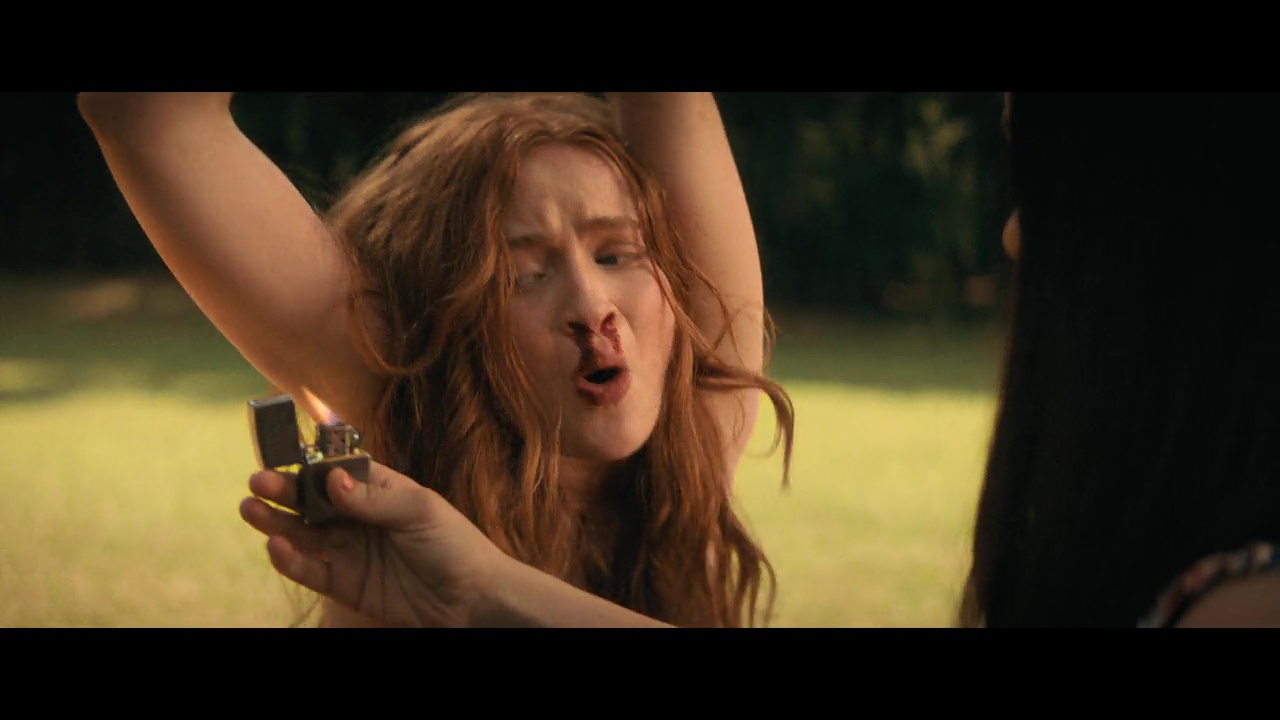 Terminé donc la mode de Scream, les multiples références à tout va, les notes d’humour pour adoucir le ton, comme le faisait le premier film, qui dans le fond, vu comme ça, rendait plutôt bien hommage à toute cette vague de slashers post Scream visant en premier lieu un public adolescent. Ici, sans pour autant changer de ligne directrice, ce second chapitre, en plaçant son intrigue dans un camp de vacances en 1978 ne va pas chercher bien loin, l’hommage est évident. C’est Vendredi 13 et autres Massacres au Camp d’été (Sleepaway Camp) qui est en ligne de mire. Terminé également l’éclairage au néon, l’ambiance semi-urbaine, ces centres commerciaux, non, ici, c’est la forêt, les cabanes en bois, les jeunes toujours aussi stéréotypés, et toujours deux villes qui se foutent sur la gueule et ne s’aiment pas. En gros, un propos assez similaire au premier film, mais qui resserre ses influences pour donner l’impression d’un film avec une seule direction. Et ça, c’est clairement bénéfique à l’œuvre, car si le public visé reste le même, l’hommage semble plus sincère que sur le premier film, et en plus, on nous offre un personnage principal, Ziggy (Sadie Sink) finalement plus intéressant et plus travaillé que tous les personnages du premier film. Un bon point donc. Non pas que son cheminement soit original, que le traitement soit génial, mais l’ensemble tient la route, et surtout, l’actrice délivre une solide performance. Et si on n’échappe pas à quelques références lors des dialogues (Carrie par exemple), c’est malgré tout bien moins envahissant. Un grand pas en avant donc ? Oui et non. Car malgré tout, on peut toujours regretter que l’ensemble, bien que R-Rated, soit si soft, à quelques plans près.