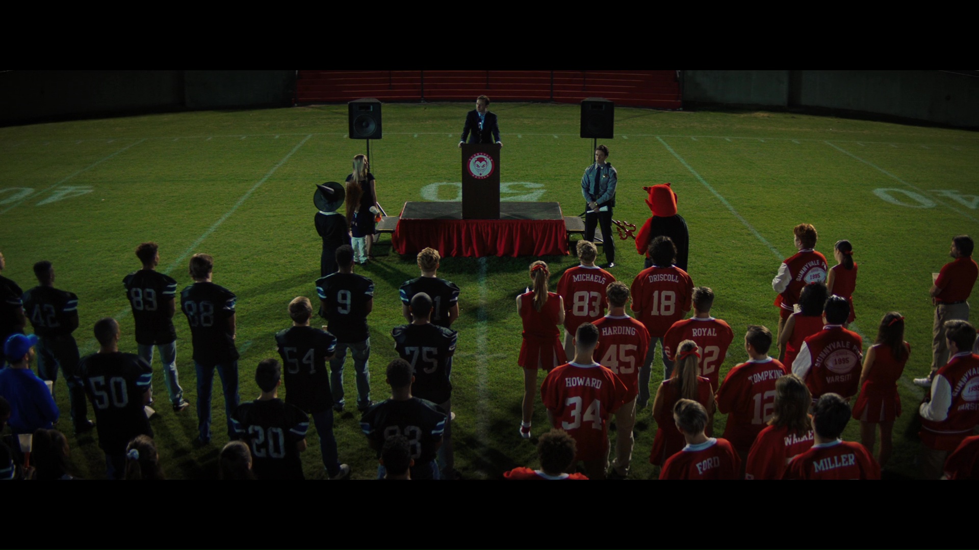 Quand tout semble rentrer dans l’ordre mais que l’on voit qu’il reste 20 minutes, on sait très bien qu’un ultime rebondissement final va apparaître et relancer la machine. C’est dommage, car à côté de ça, mine de rien, la mise en scène n’est pas mauvaise, d’ailleurs tout l’aspect technique n’est pas mauvais. Les meurtres eux ne sont pas trop inventifs ni trop sanglants, mais ça gicle malgré tout plus que dans une production du même style venant de chez Blumhouse, et c’est appréciable, et malgré le côté prévisible de l’ensemble, on ne va pas se mentir, ça reste tout à fait rythmé et donc jamais ennuyeux. Ce slasher à la cool plutôt coloré (au néon) et baignant dans une ambiance musicale typée années 90 fonctionne bien, à condition qu’on ne lui en demande pas trop, et que l’on en accepte les nombreux défauts que le scénario ne cherche même pas à éviter, un peu comme si le film embrassait les défauts inhérents du slasher, ce qui est, dans le fond, assez étrange. Défaut dans la fidélité avec l’œuvre littéraire ? Je ne sais point. Tout ça pour dire que voilà, Fear Street Part 1, ça n’innove en rien, ça embrasse tous les clichés possibles et imaginables, mais ce n’est pas pire que ce que l’on trouve ailleurs. Ni meilleur. Un produit assez grand public de base en fait, à quelques effusions de sang près. Divertissant, et puis voilà.