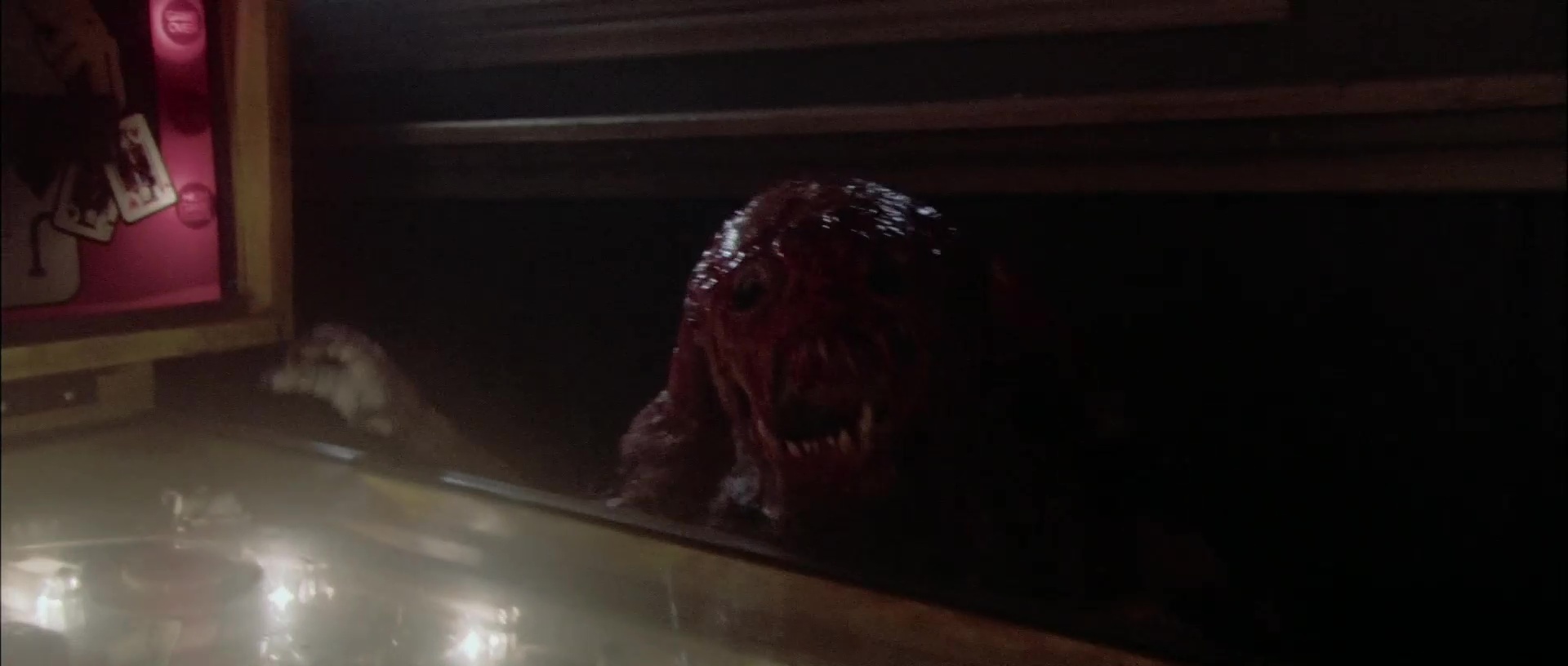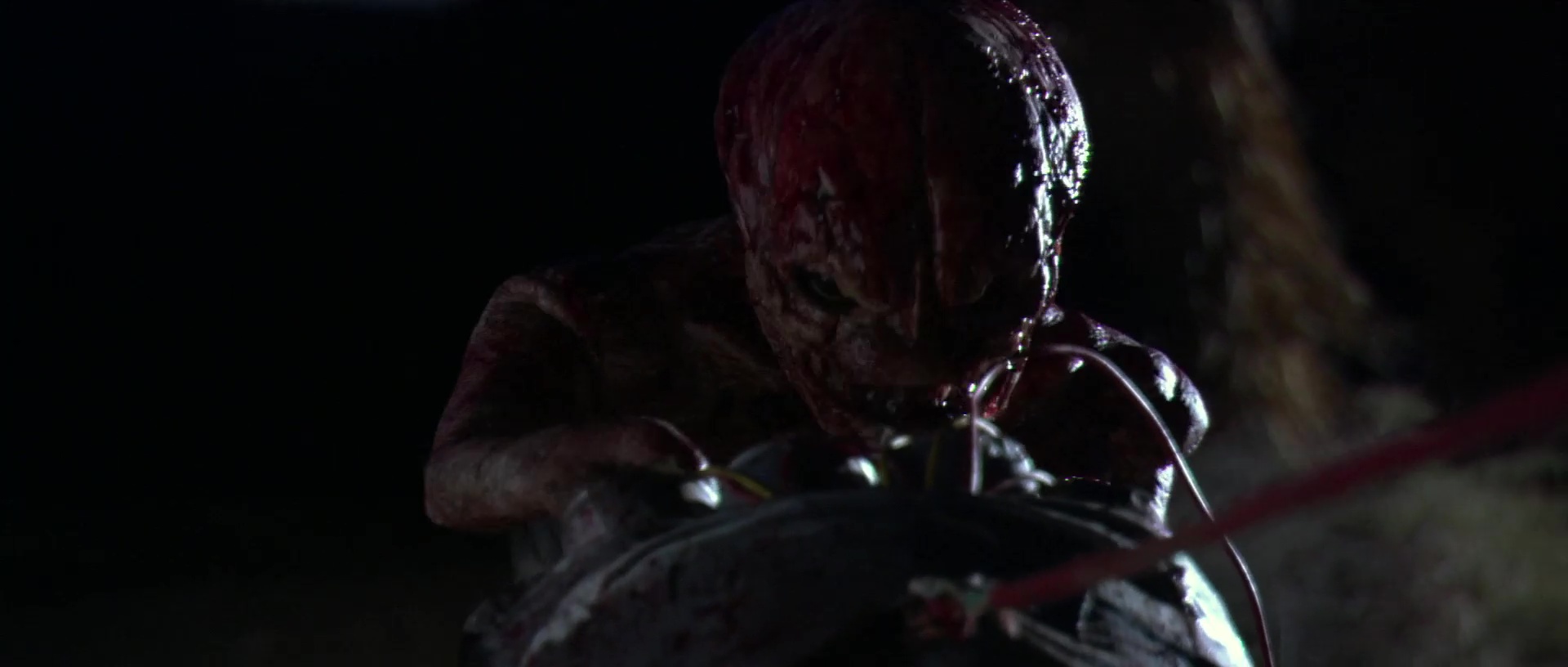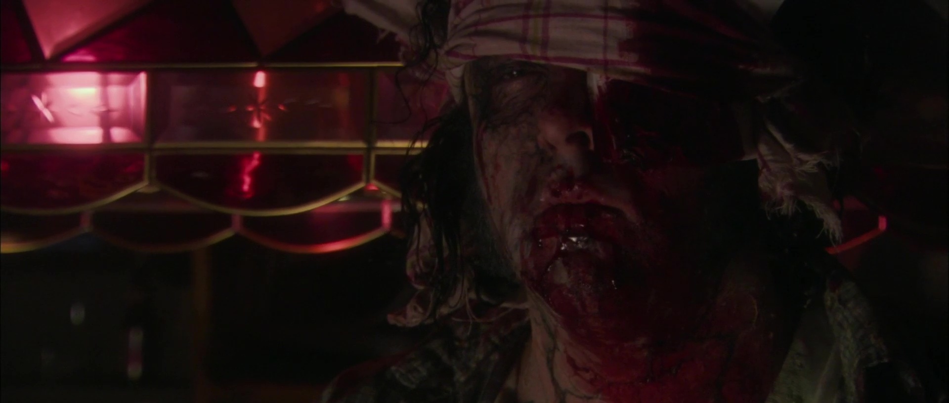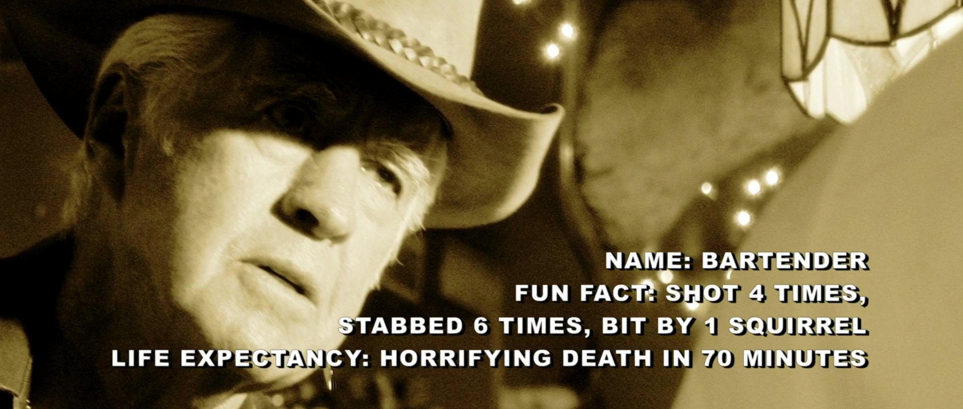 Ce quelque chose, c’est clairement la mise en scène. Car vouloir faire un film volontairement con et fun, c’est bien. Vouloir mettre du gore crade partout, c’est bien. Faire des blagues salaces, pourquoi pas, ça donne au film un gros côté sale gosse. Mais filmer proprement le tout pour que l’on comprenne ce qu’il se passe, c’est mieux. Et le souci de Feast, c’est que dés que les choses bougent à l’écran, le caméraman est atteinte de Parkinson et le monteur a eu le doigt sans doute bloqué trop longtemps sur le bouton « coupez ». Pour leur défense, il faut dire que John Gulager, bien qu’ayant sans doute grandis sur quelques plateaux grâce à son père Clu Gulager, tenant justement le rôle du barman dans le film de son fils, étant un débutant, avec un projet ambitieux et blindé d’effets spéciaux, pour un film coutant finalement peu. John Gulager, les plans larges, il ne semble pas connaître. Quand ça parle, quand ça bouge, quand ça se bastonne, quand ça crève, il faut cadrer serrer, et du coup, il ne laisse pas franchement son film respirer. Mais bon, comme je le disais, malgré tout, Feast a toujours un petit côté sympathique, notamment grâce à son côté film de sale gosse. Et ce dés le début, qui met en confiance, avec pour chaque personnage un arrêt sur image et du texte qui vient nous le présenter, avec beaucoup d’humour, puisqu’on nous dira clairement l’espérance de vie des personnages, avant finalement de nous tromper en tuant en premier le héros, en faisant vivre longtemps les vieux, les handicapés, la cruche de service ou les enfoirés. Ce côté qui ne se prend jamais au sérieux, qui s’amuse des conventions donne à Feast une impression de fraicheur, de spontanéité, ou en tout cas, de nouveauté. Ce qui n’est bien entendu pas le cas mais bon. Qu’importe, puisque sur l’instant, ça fonctionne. On a des têtes connues, quand les acteurs gardent leur tête, ça gicle un peu partout, les tripes s’éparpillent au sol, des monstres sauvages enferment nos personnages dans un bar, et nous voilà partis pour un huis clos efficace car court et rythmé.