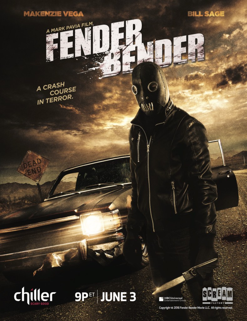 J’avais hâte de voir Fender Bender, un film tenant pour moi du miracle. Non pas que j’attendais ce film en particulier pour son histoire ou son casting non, mais il s’agît du second film de Mark Pavia. Un inconnu pour beaucoup, mais dont le premier film, The Night Flier avec Miguel Ferrer, m’avait laissé un très bon souvenir, avec son ambiance tendue, son thème (la presse à scandale) intéressant et sa vision différente du mythe du vampire. Sauf que oui, The Night Flier, ça date de 1997. Oui, Fender Bender lui date de 2016. 19 longues années pour voir le second métrage de Mark Pavia ! Au final est-ce que l’attente en valait la peine ? Oui assurément par beaucoup d’aspects, même s’il faut reconnaître que ce coup-ci, niveau scénario, il fait dans la simplicité. Écrit, réalisé et coproduit par Mark Pavia, Fender Bender ne traite pas des vampires cette fois, mais lorgne plutôt vers le slasher. Mais pas le slasher comme on le connaît aujourd’hui, à savoir des DTV tournés à l’arrache et accumulant les meurtres pour que le spectateur oublie qu’autour, il n’y a rien. Plutôt un slasher façon début des années 80, quand ce n’était pas encore trop gore, mais que les réalisateurs tentaient avant tout de poser une ambiance, de l’étirer pour faire fonctionner la tension. Sur le papier donc, Fender Bender ne propose rien de nouveau. Hillary, une jeune fille de 17 ans, a un accident avec un chauffeur dont l’on ignorera tout. Ils échangent leurs informations pour l’assurance, sauf qu’Hillary ignore que le chauffeur est un serial killer allant de ville en ville, et traquant ses proies féminines lorsqu’il est en panne d’essence, pour assouvir ses pulsions, puis faire le plein en récupérant un peu d’argent.