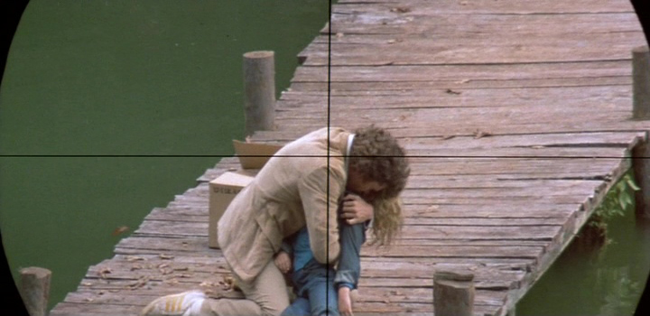Dès le début d’ailleurs, on a l’impression que le film a été piocher son identité visuelle dans d’autres métrages sortis peu de temps avant. Ainsi, lorsque Andy, le père de Charlie, utilise ses pouvoirs (celui de matérialiser des choses devant les yeux des gens et de contrôler leurs pensées), on pense indéniablement à Scanners de David Cronenberg, bruitage à l’appui. Au delà de ça donc, Firestarter se découpe clairement en deux parties. La première nous raconte la fuite de Charlie et de son père, poursuivis par le gouvernement. Ça fonctionne plutôt bien, le métrage nous explique les tenants et les aboutissants de l’histoire avec quelques flashbacks, l’ensemble démarre doucement, on rencontre les personnages, comme souvent chez Stephen King, avec des gentils très gentils et des méchants très méchants. Le casting tient plutôt la route malgré un ou deux moments un poils moins inspirés, mais Drew Barrymore s’en sort à merveille dans un rôle pas si simple pour une gamine. Dans le camp des méchants, outre la participation de Martin Sheen (Apocalypse Now) juste après avoir déjà joué le méchant dans Dead Zone de Cronenberg, déjà d’après King, on notera la présence de George C. Scott, plutôt intéressant, mais également de Freddie Jones, acteur récurent chez Lynch dans les années 80 (Elephant Man, Dune, Sailor et Lula). Malgré un rythme posé, la première heure passe bien. Durant la seconde heure, les enjeux changent, Charlie et son père étant capturés et captifs dans un complexe scientifique.