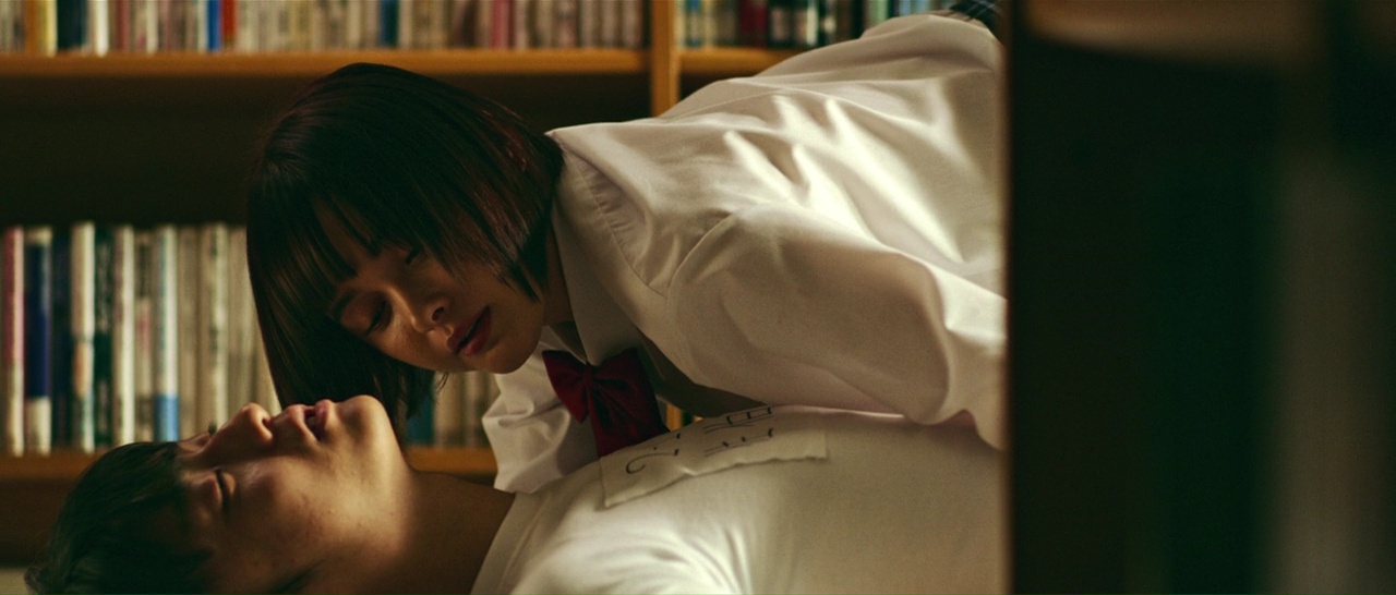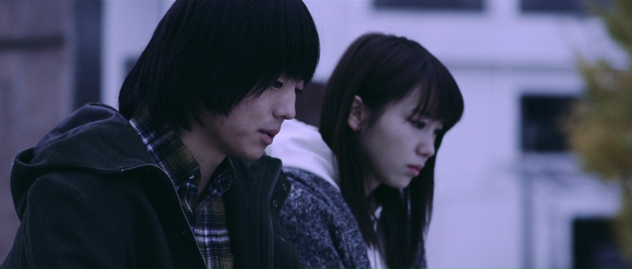 Malgré ses 2h07, bien qu’on puisse dire que ce soit un peu trop long par moment, et ironiquement un peu trop court vu comment parfois les événements s’enchainent vite, The Flowers of Evil passe bien. Les acteurs sont investis, Iguchi parvient à nous surprendre, à la fois en se faisant plus suggestif que démonstratif, et car du coup, il nous surprend dans nos habitudes. Certains moments plutôt durs, ceux qui ont attrait à la perversion ou la soumission des personnages fonctionnent, et même certaines scènes un peu plus douces fonctionnent. Quelques petits moments un peu plus niais, présents d’ailleurs dans le fond dés le début, et qui me faisaient grincer des dents, trouvent alors un peu grâce à mes yeux, comme si dans cet étrange numéro d’équilibriste, Iguchi parvenait à doser l’ensemble pour faire passer le tout. Oui, au départ, le premier rencard entre notre héros et Saeko, je trouvais la situation mignonne, la déclaration de Kasuga pure, mais j’avais un peu de mal à y croire. À croire à ce début de relation alors qu’ils ne se sont parlés que deux fois et que leur premier rencard était dans une librairie. Et puis tout à coup, sans prévenir, je n’y ai plus fais attention, l’ensemble aimant varier les situations, passer d’une scène niaise à une scène plus dure, parfois plus grotesque, ou plus perverse, avec vol de petites culottes, destructions d’une classe, ou, comme annoncé dés la scène d’ouverture, des scènes de suicide également, l’ensemble passe plutôt bien.