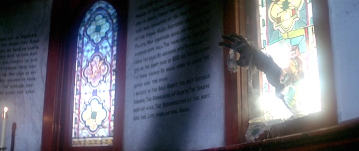 Et autant le dire, il gère tout cela de main de maître. Que ce soit les nombreux plans mettant en avant la brume envahissant les rues de la ville, ou les plans révélant les fameux fantômes, bien que souvent cachés dans l’obscurité ou par la brume elle-même, tout fonctionne. On pourra bien dire qu’un ou deux plans passent moins bien que les autres (oui, les yeux rouges qui brillent, bon !), et pourtant, on n’aura jamais envie de rire ou de se moquer. Le tour de force aura été de rendre le tout crédible en travaillant avant tout l’ambiance. Et quelle ambiance mes amis ! Si l’on rentre dedans (comme tout Carpenter), l’ambiance nous prend à la gorge pour ne plus nous lâcher avant le final, malheureusement certes un peu expéditif. Les lourdes notes de synthé accompagnent la fuite de nos différents personnages, cherchant un refuge pour fuir la brume et ce qu’elle contient, cette brume qui ne semble vouloir épargner personne, ni femme ni enfant ! Il est donc plutôt étonnant de savoir que Carpenter retournera un tiers de son métrage suite à un premier montage jugé catastrophique par lui-même. Au même niveau, c’est la bande son, absolument géniale, qui fut totalement réécrite. Peut-être est-ce au final cette remise en question par son auteur lui-même qui aura donné un produit finit aussi savoureux, aussi bien réalisé et conçu. Oui, de la bande son à la qualité de la mise en scène, en passant par la gestion des éclairages, plutôt sophistiquées (la lumière lumineuse de la brume, de nombreuses scènes dans l’obscurité) ou même sa construction, puisque l’on retrouve un peu comme dans Assaut plusieurs groupes de personnages qui se retrouveront, Fog est une grande réussite de plus pour Carpenter !